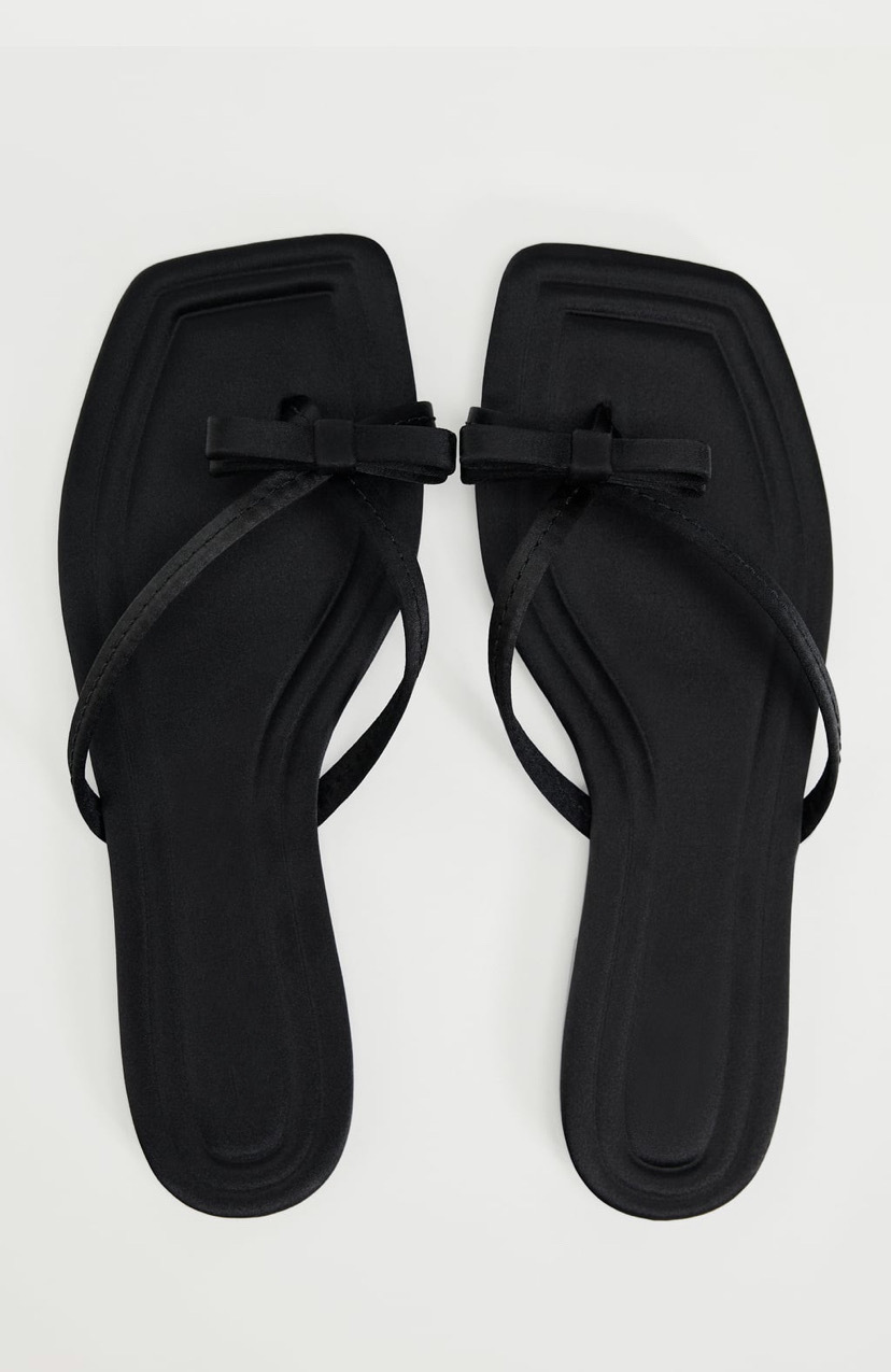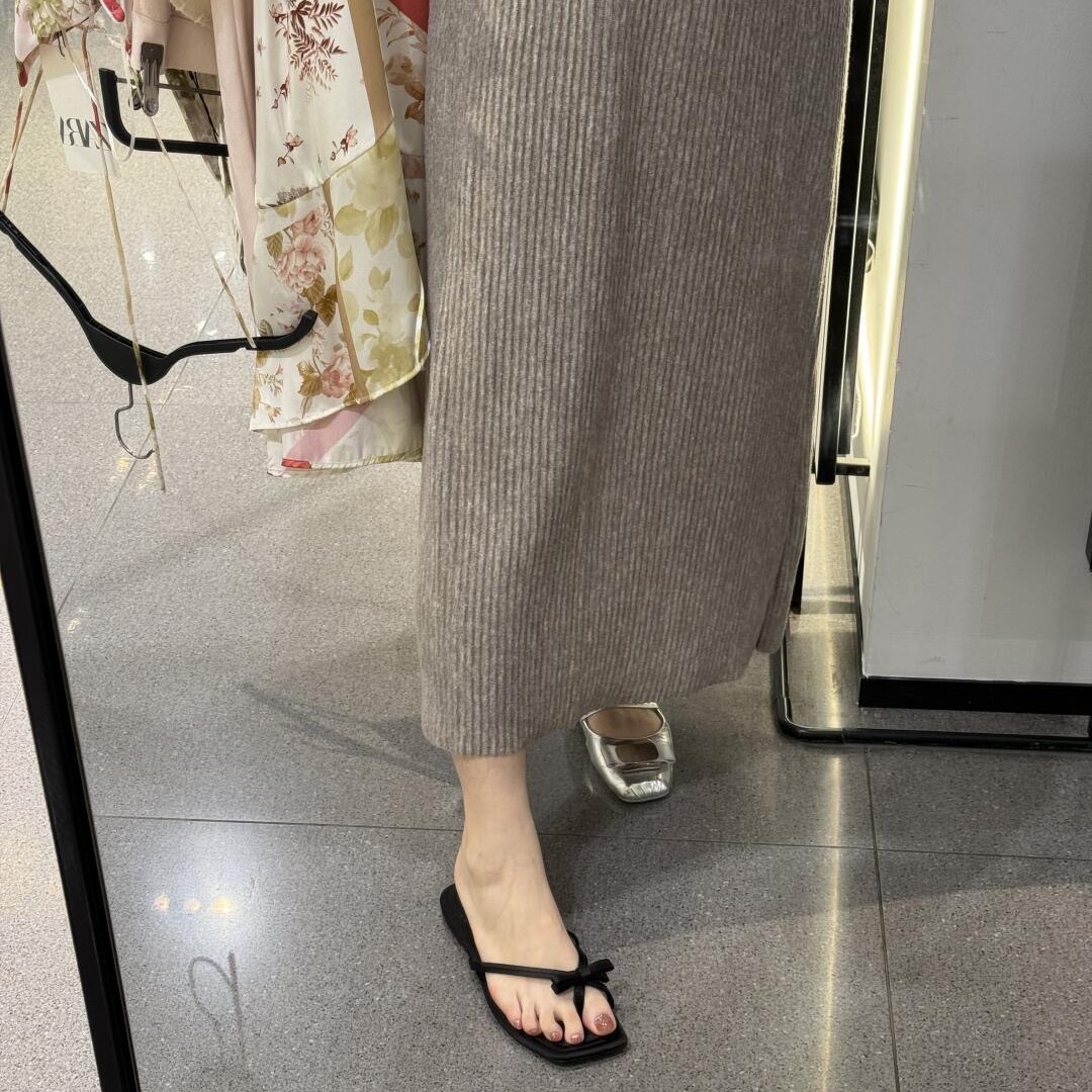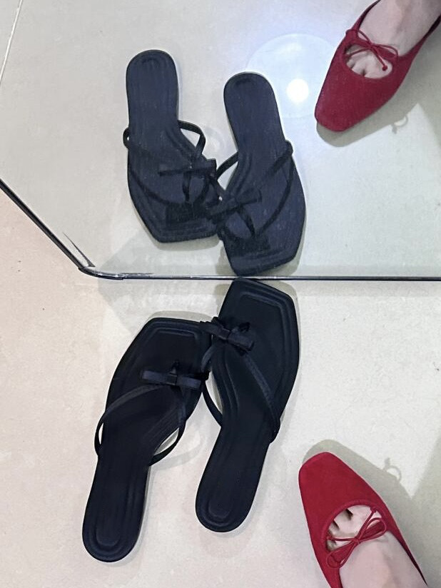 여성을위한 정품 가죽 한국어 스타일 스퀘어 발가락 플랫 보우 슬립 온 슬리퍼 2025 여름 새 스타일 비치 슬리퍼