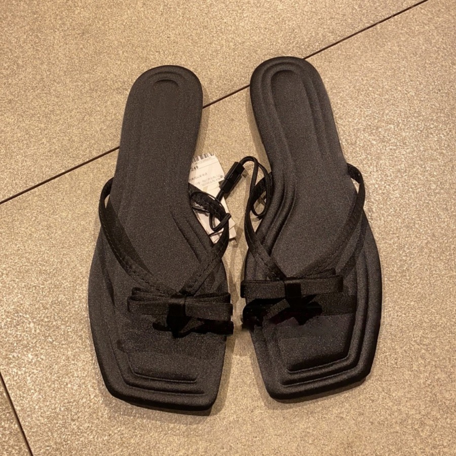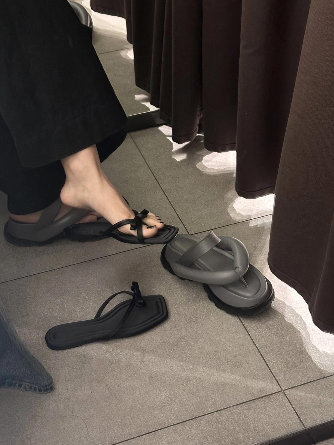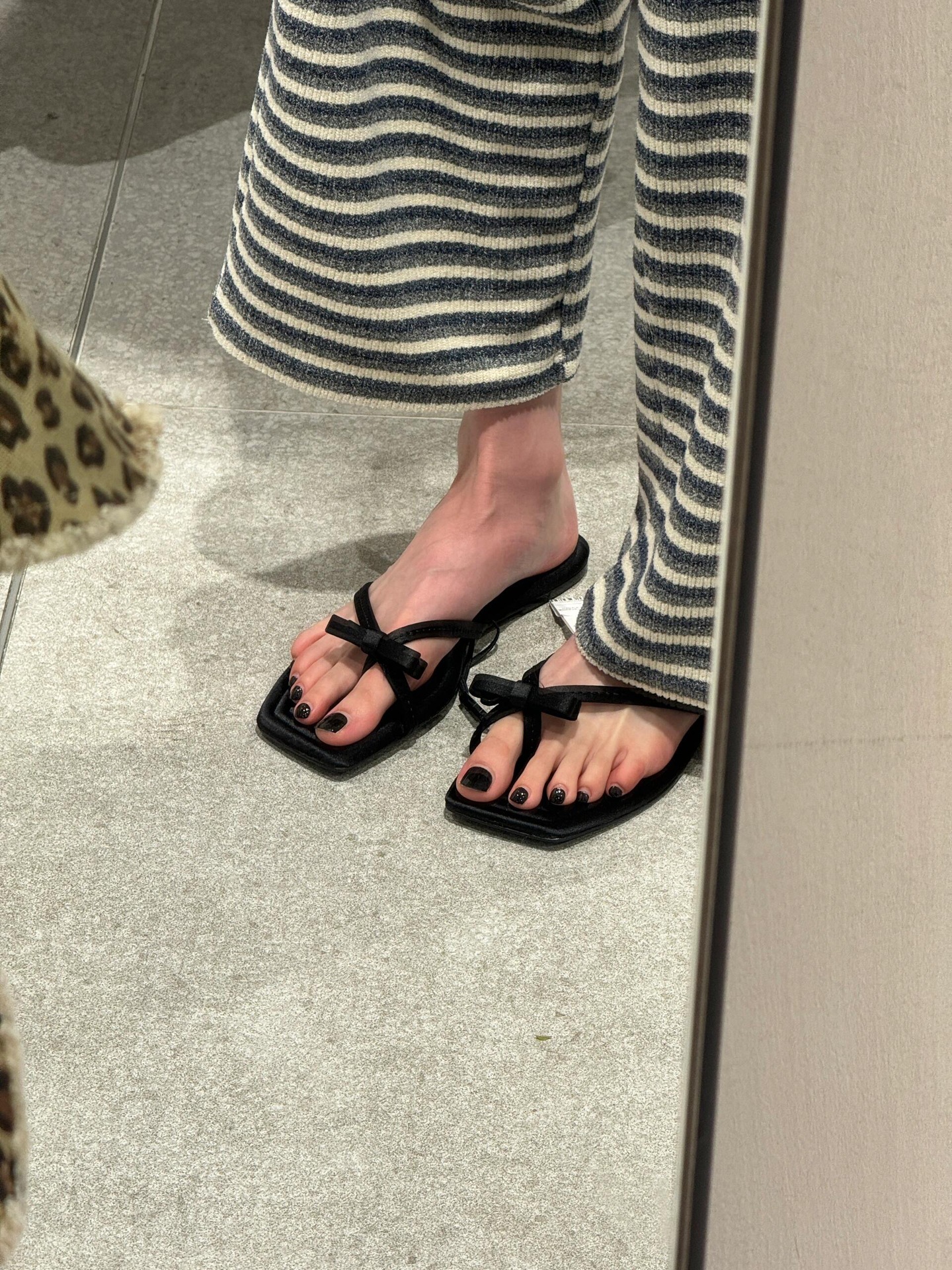 여성을위한 정품 가죽 한국어 스타일 스퀘어 발가락 플랫 보우 슬립 온 슬리퍼 2025 여름 새 스타일 비치 슬리퍼스토어 가기