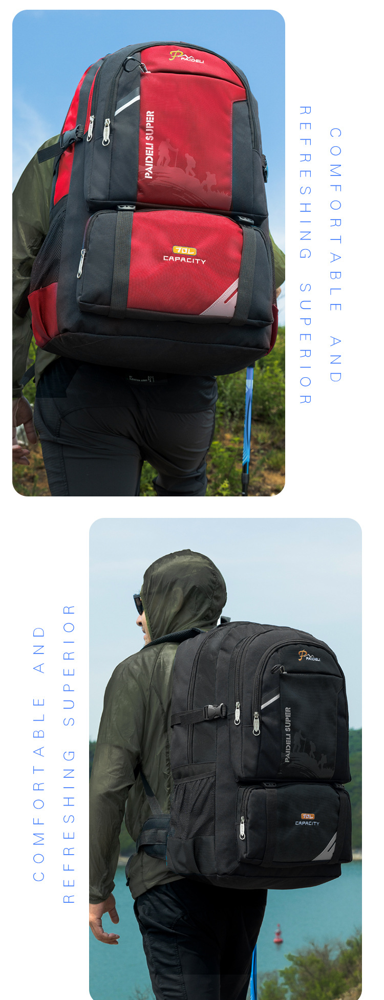 도매 야외 배낭 남성 대용량 방수 배낭 수하물 가방 Schoolbag 남성용 여행 가방 등산 가방