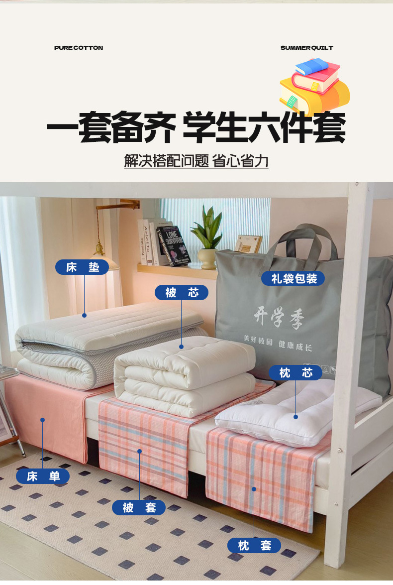 기숙사 전용 6종세트, 대학 2층침대 시트, 이불, 매트리스 3종세트, 다종세트, 학생용 침구스토어 가기