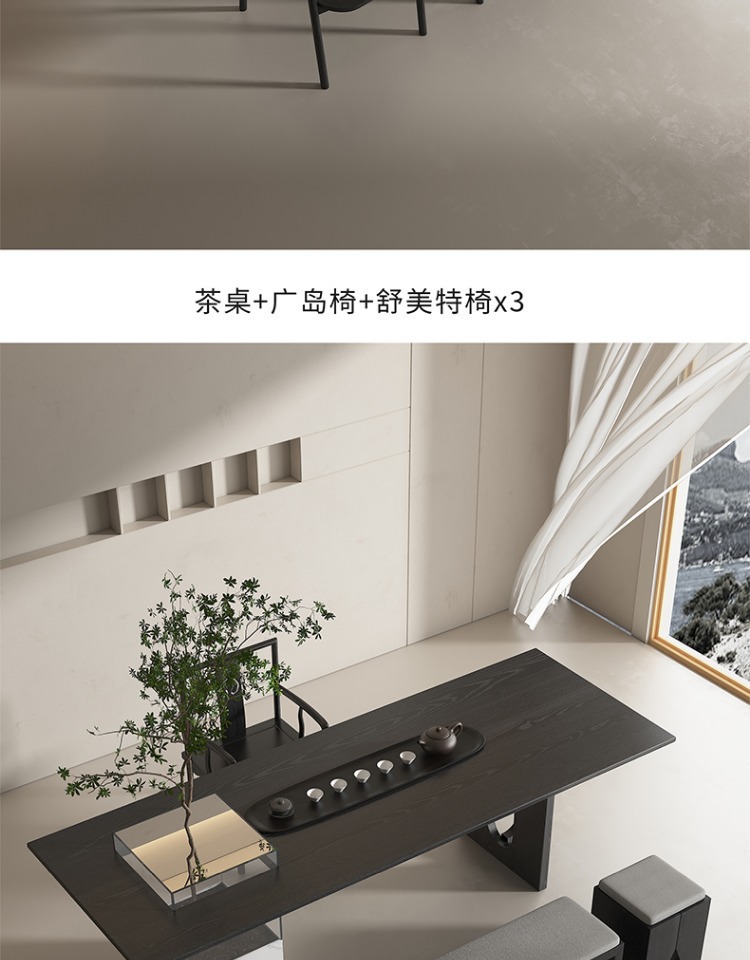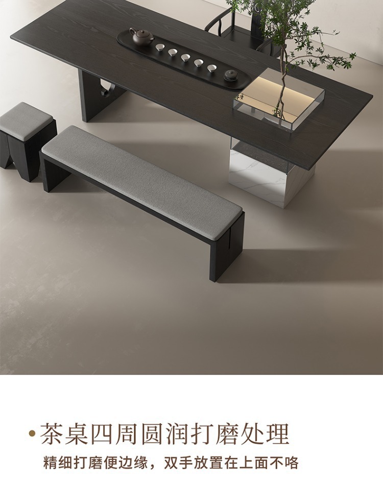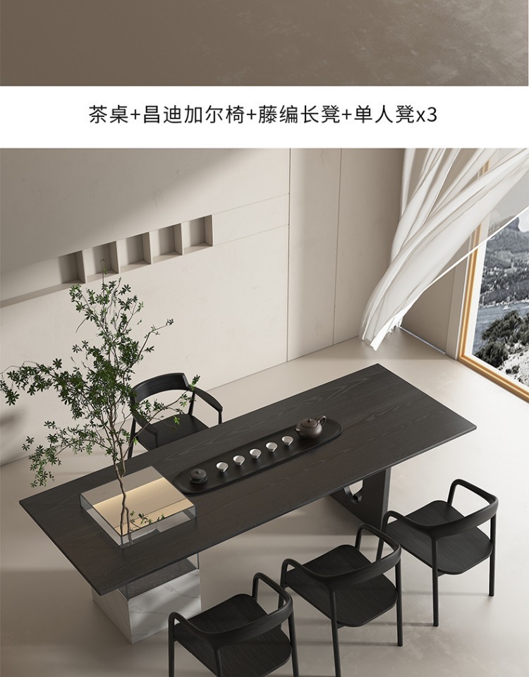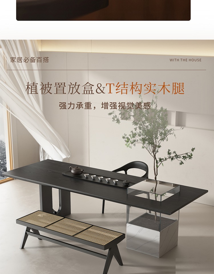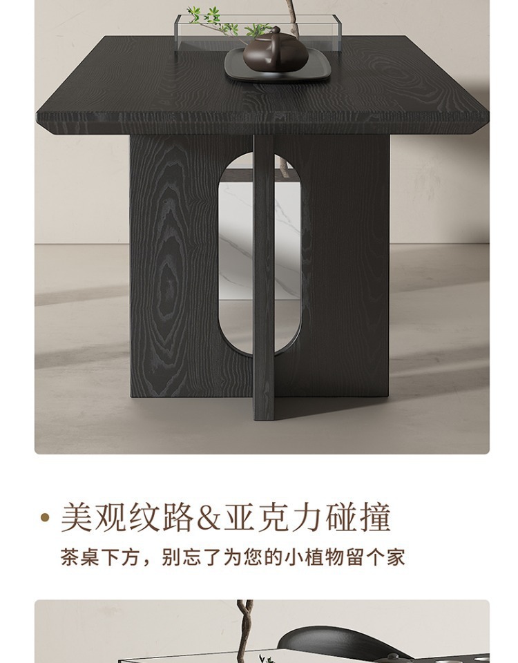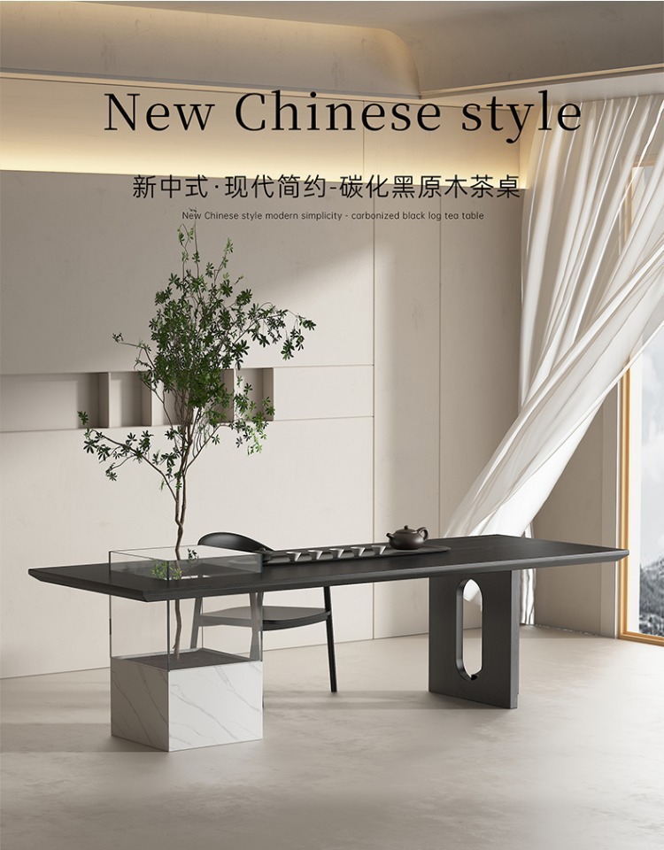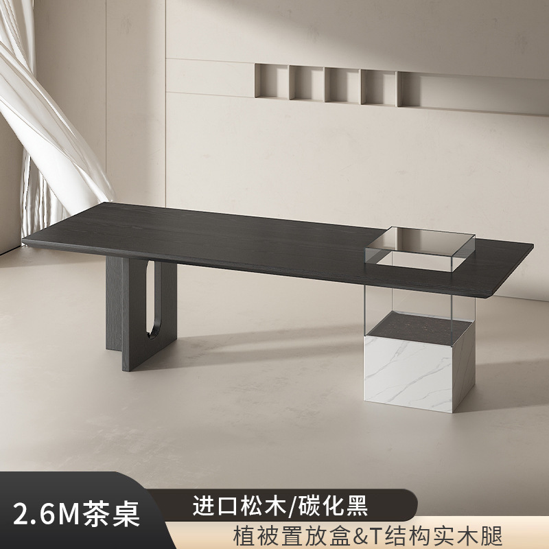 조용한 스타일의 차 테이블 아크릴 화분 블랙 솔리드 우드 빅 보드 거실 차 테이블 디자이너 빛 고급 사무실 책상