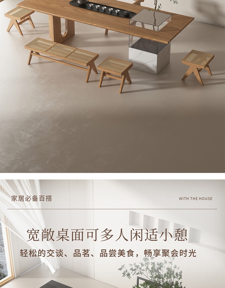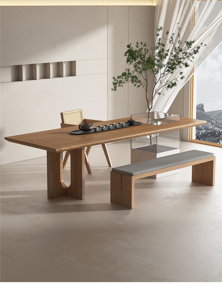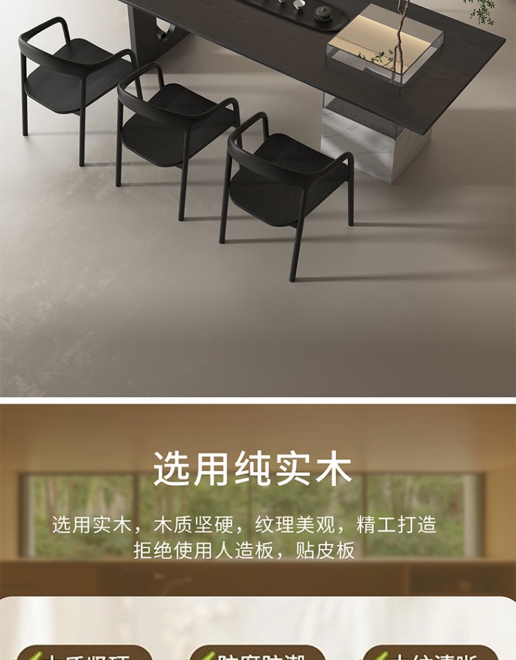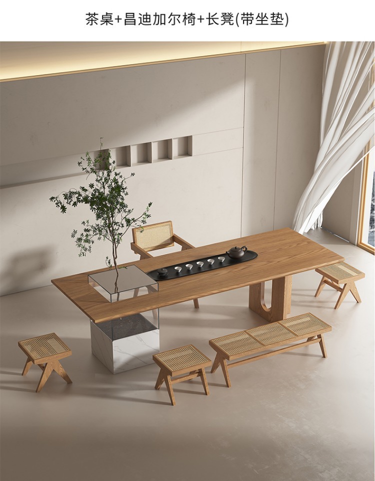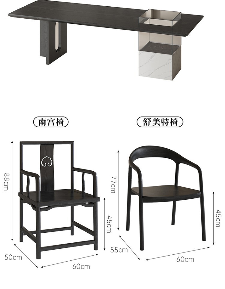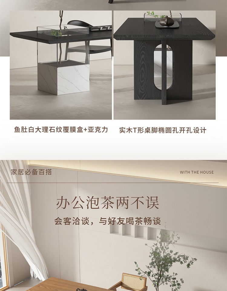 조용한 스타일의 차 테이블 아크릴 화분 블랙 솔리드 우드 빅 보드 거실 차 테이블 디자이너 빛 고급 사무실 책상
