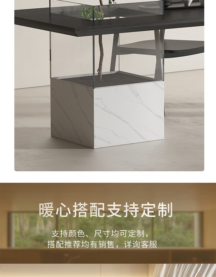 조용한 스타일의 차 테이블 아크릴 화분 블랙 솔리드 우드 빅 보드 거실 차 테이블 디자이너 빛 고급 사무실 책상스토어 가기