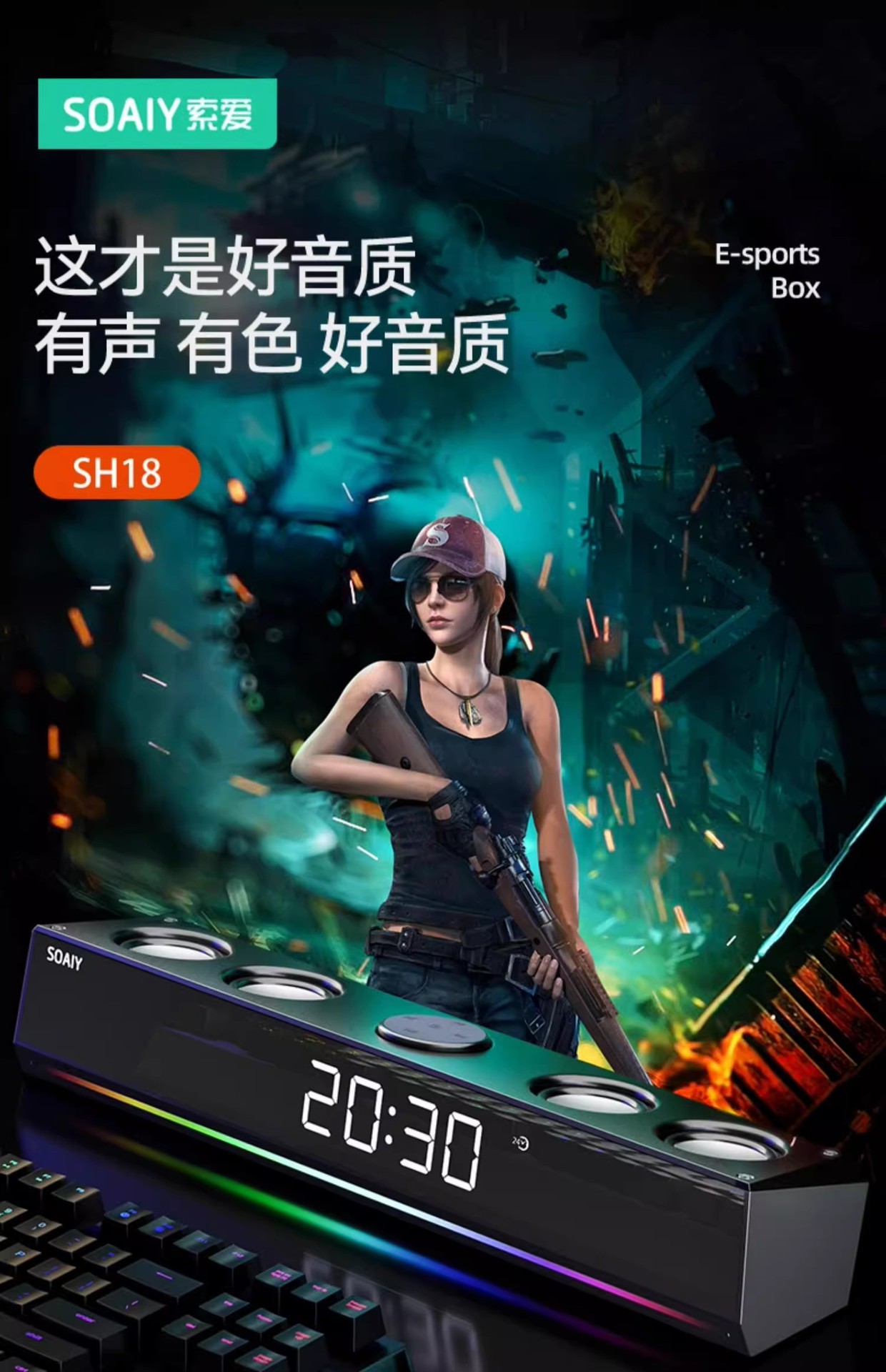 소니 에릭슨 2024 새로운 블루투스 오디오 데스크톱 긴 서브 우퍼 SH18 컴퓨터 작은 스피커 E-스포츠 게임