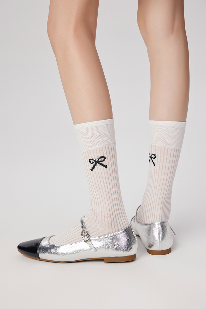 미우 보우 중간 길이의 양말 여성용 스택 양말 봄과 여름 얇은 뼈없는 양말 한국 유행 양말스토어 가기