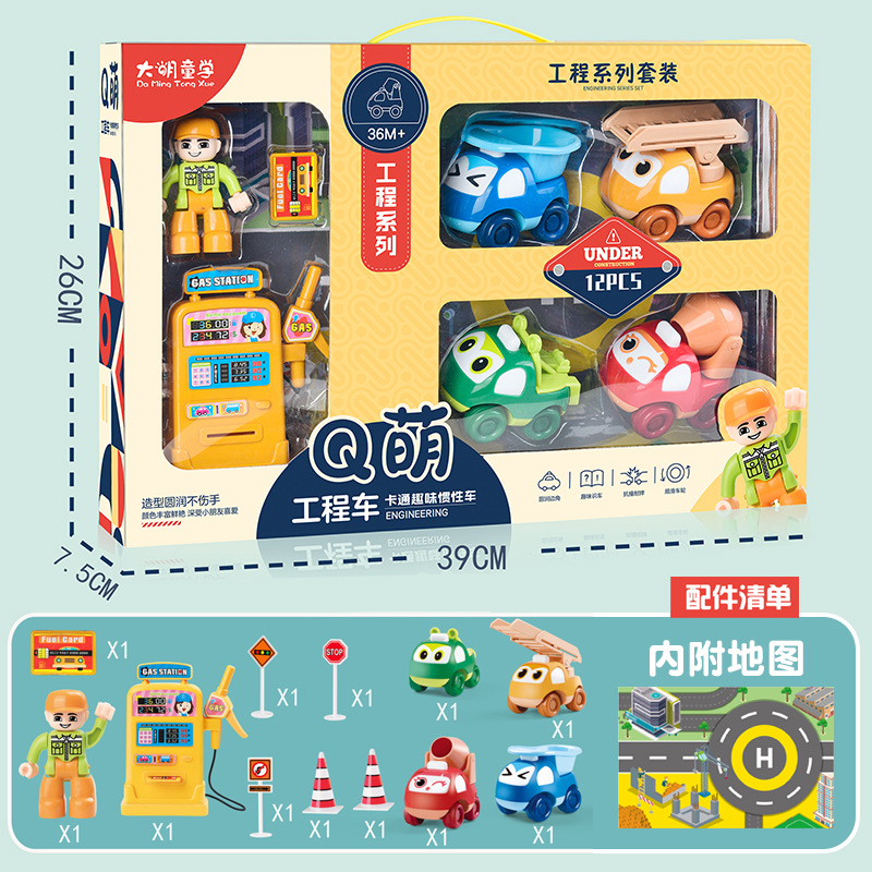 • q 귀여운 엔지니어링 차량 세트-[선물 상자]