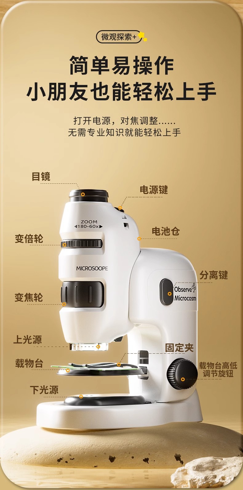 휴대용 어린이 현미경 고화질 과학 실험 세트 초등학생 실험 완구 소년 소녀를위한 조기 교육 퍼즐스토어 가기