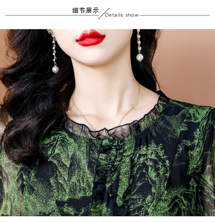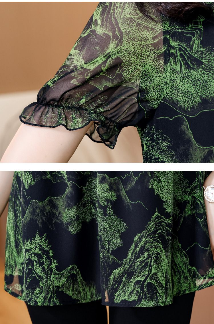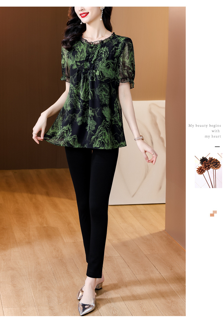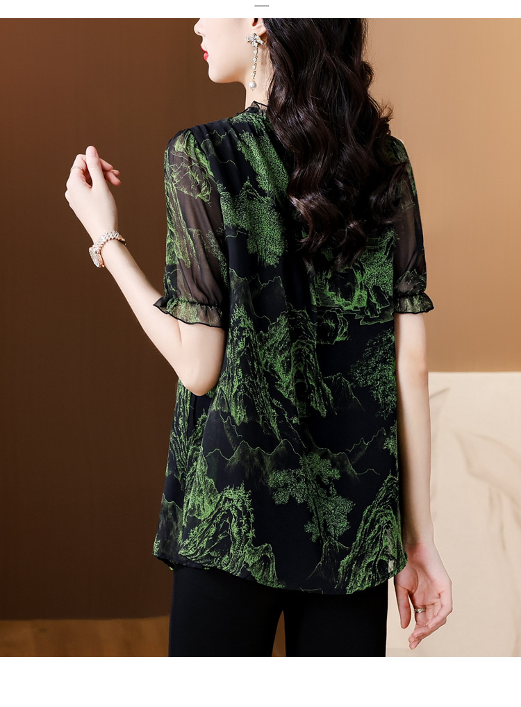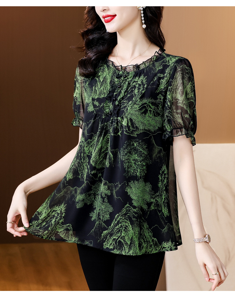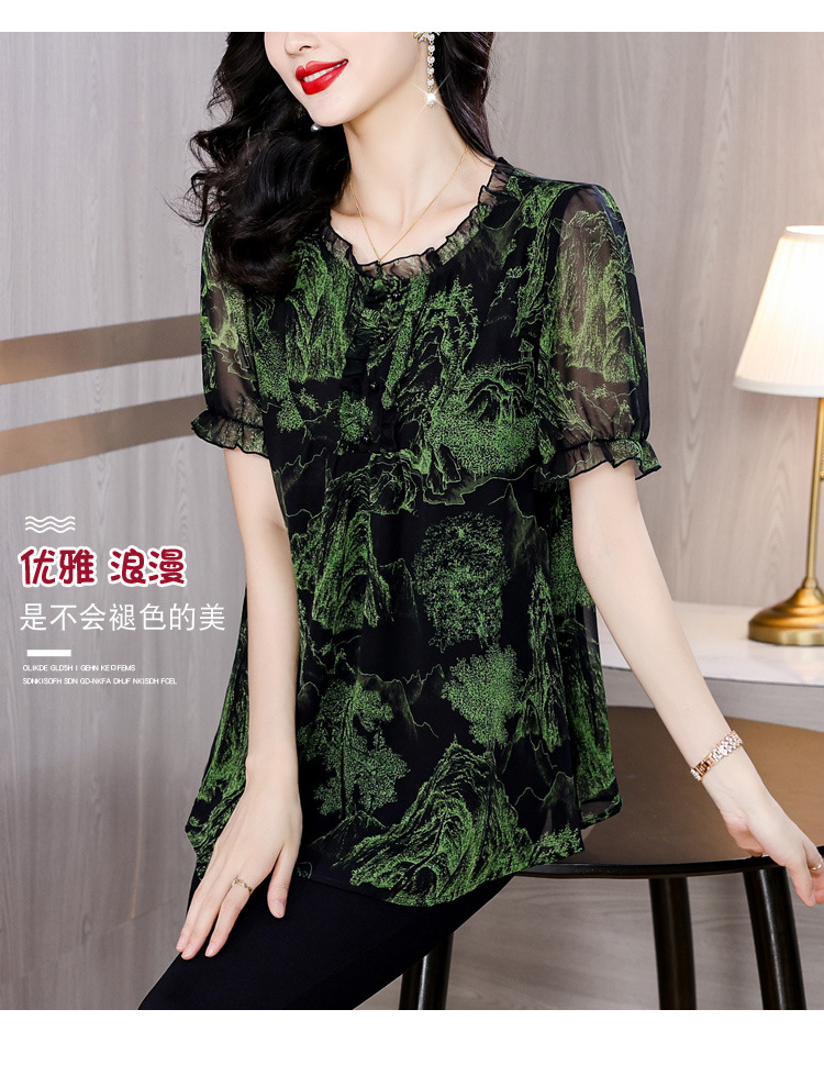 실제 촬영 2024 여름 새로운 슬리밍 꽃 쉬폰 셔츠 반팔 티셔츠 플러스 사이즈 여성스토어 가기