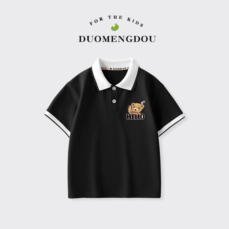 Duomengdou 소년 반팔 어린이 티셔츠 순수 코튼 큰 어린이 옷깃 탑 2025 여름 소년 스포츠 폴로 셔츠