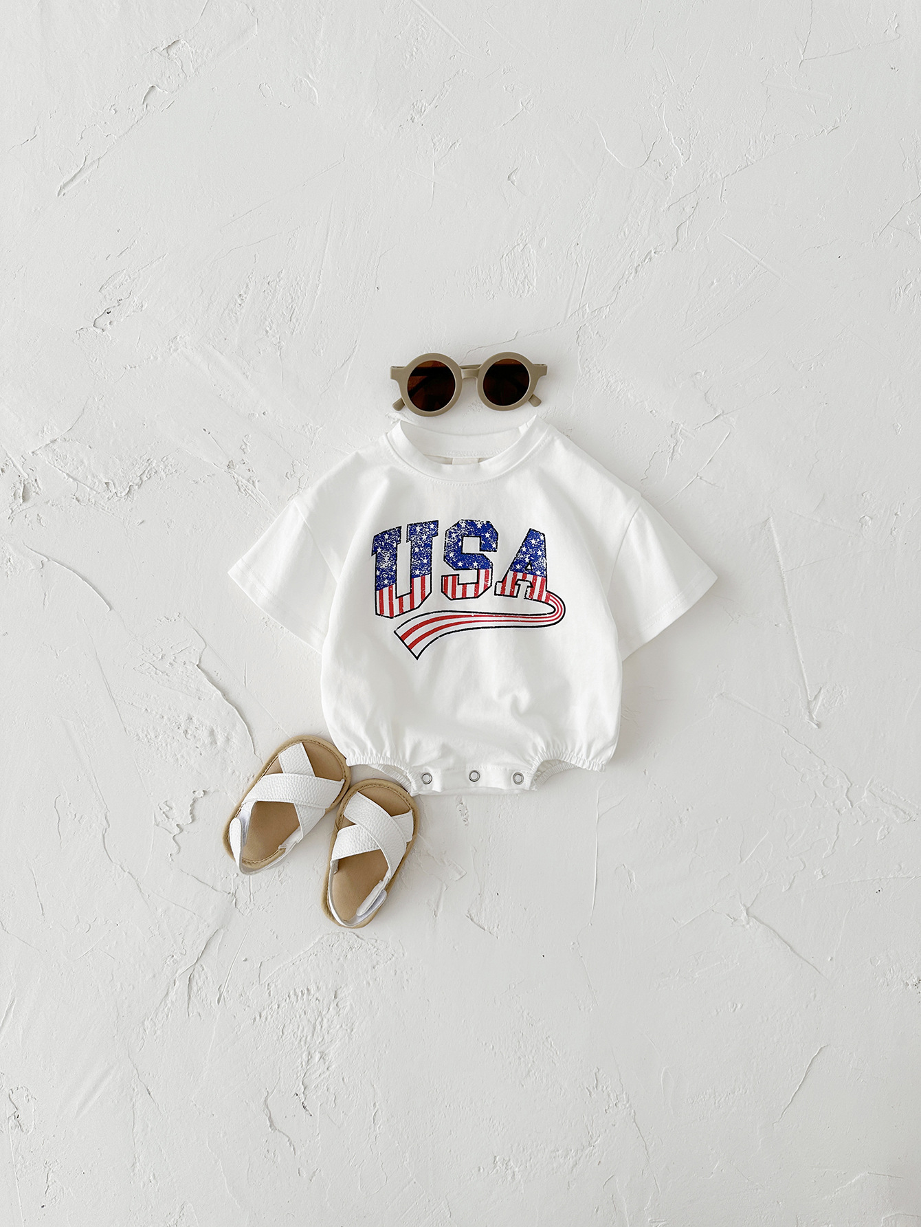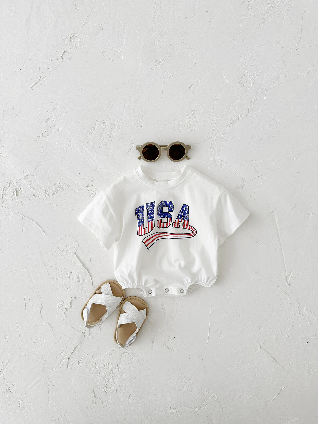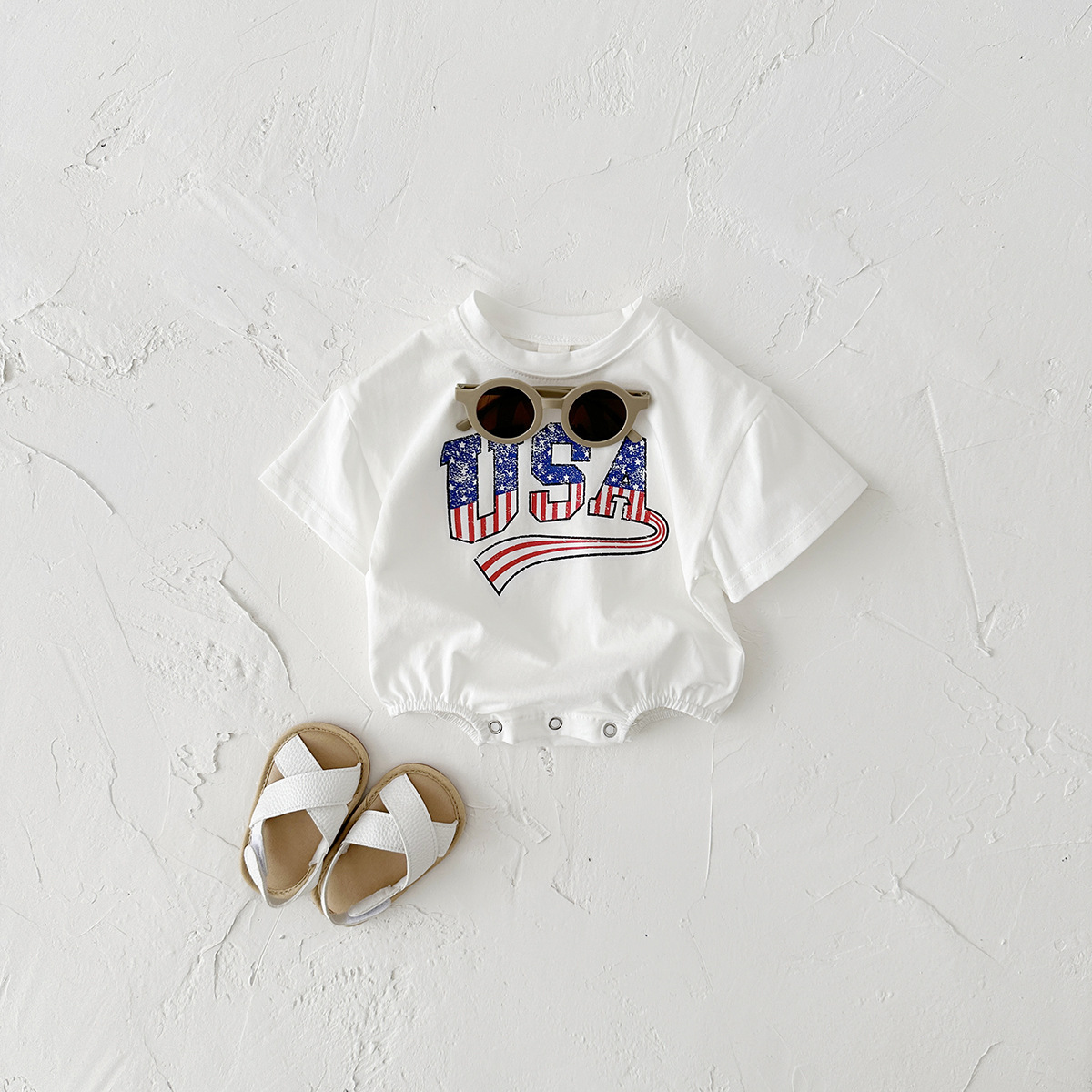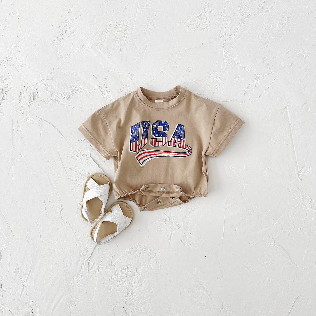 국경 간 여름 신생아 등반 세트 아기 편지 인쇄 반팔 아기 점프 수트 여름 점프 수트