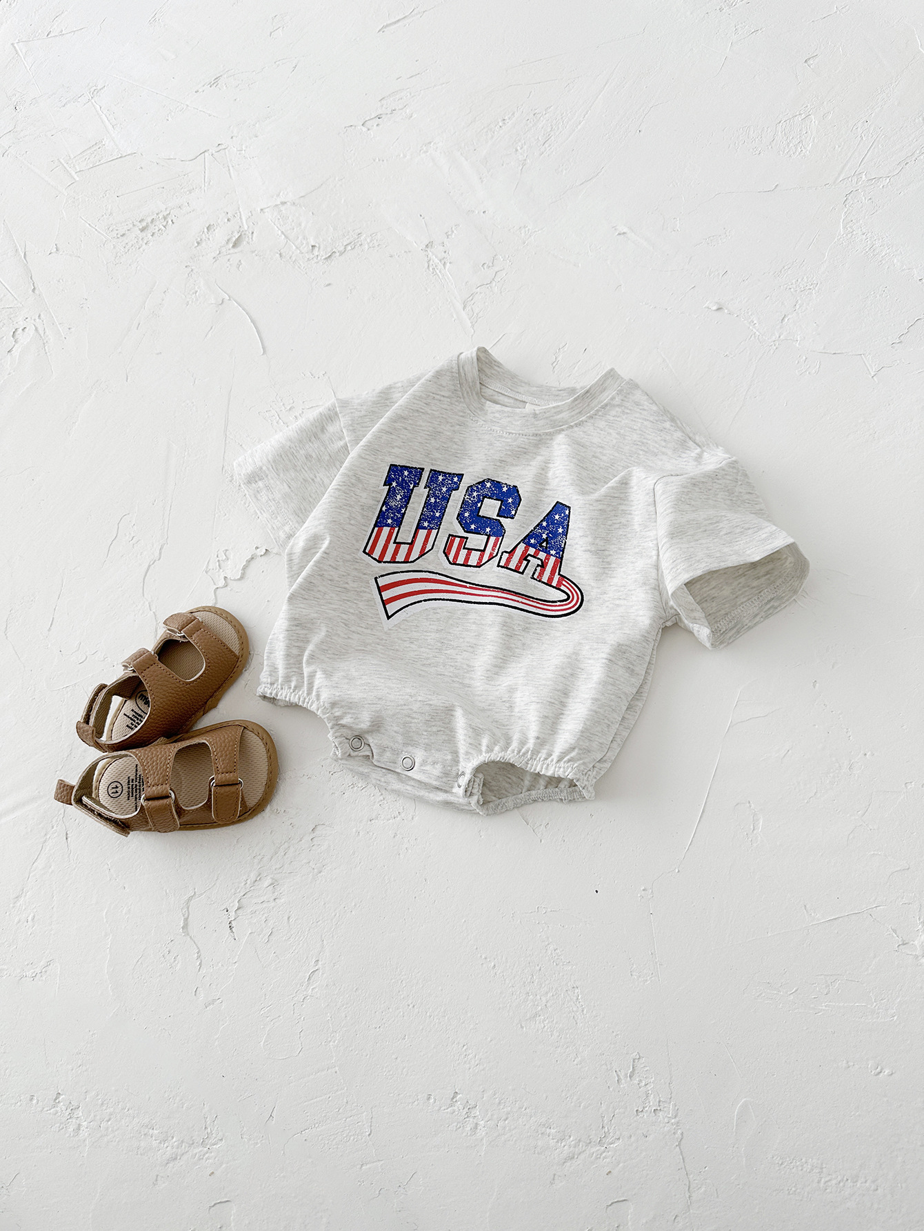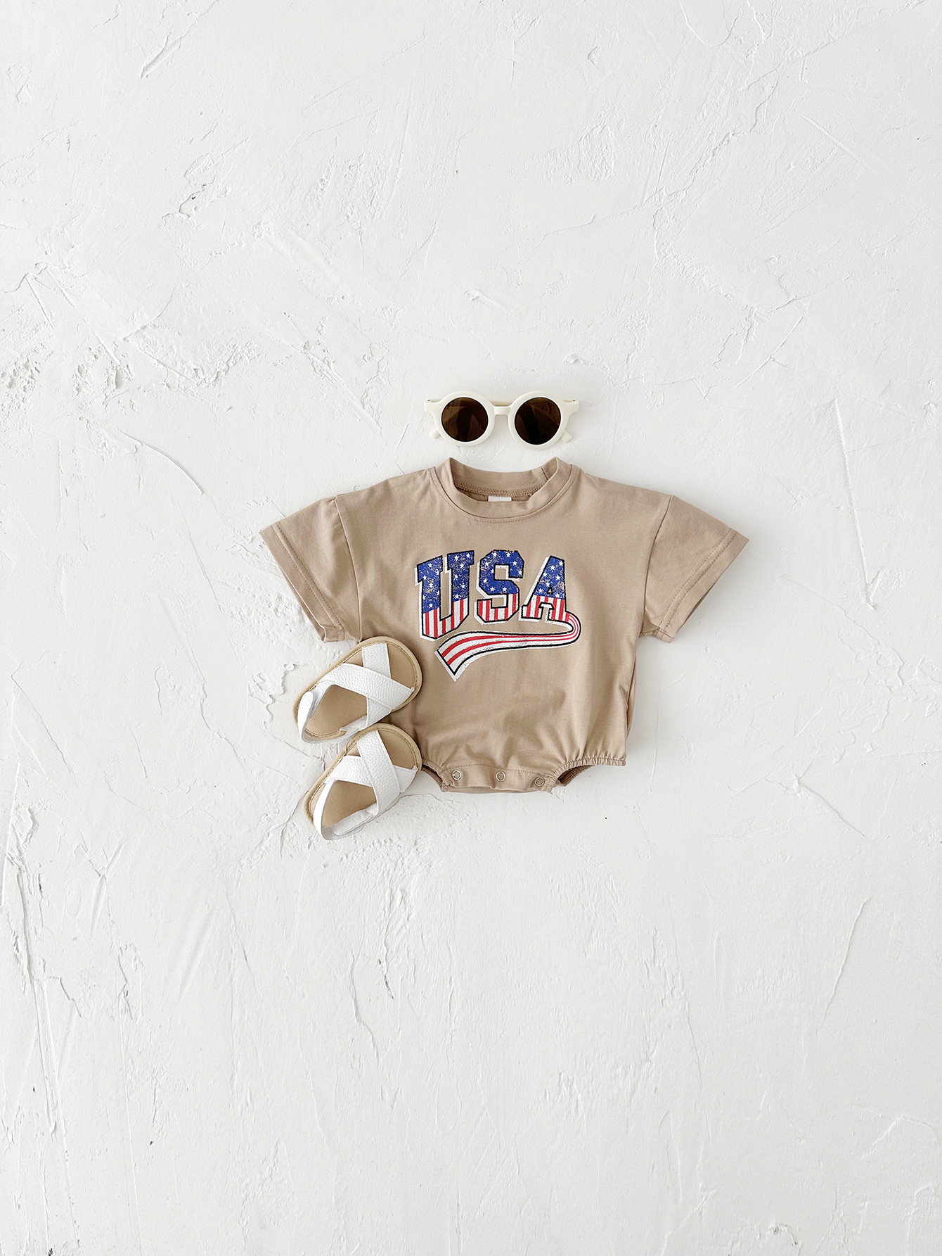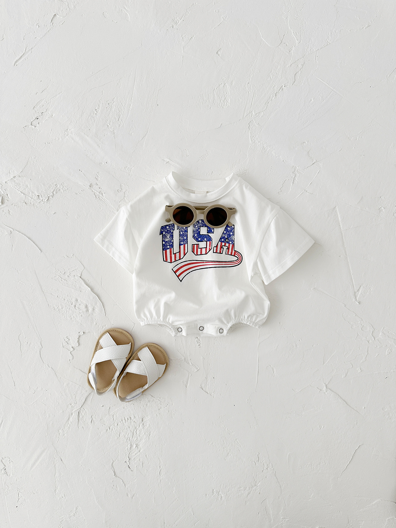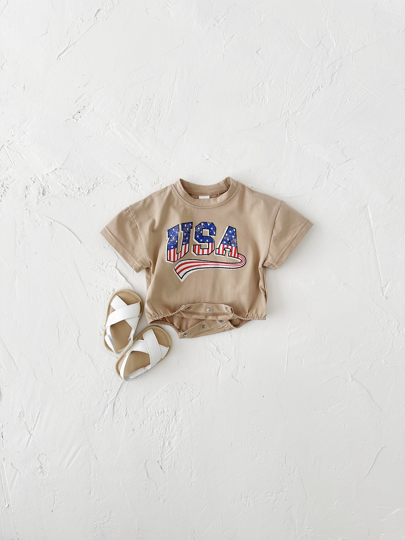국경 간 여름 신생아 등반 세트 아기 편지 인쇄 반팔 아기 점프 수트 여름 점프 수트