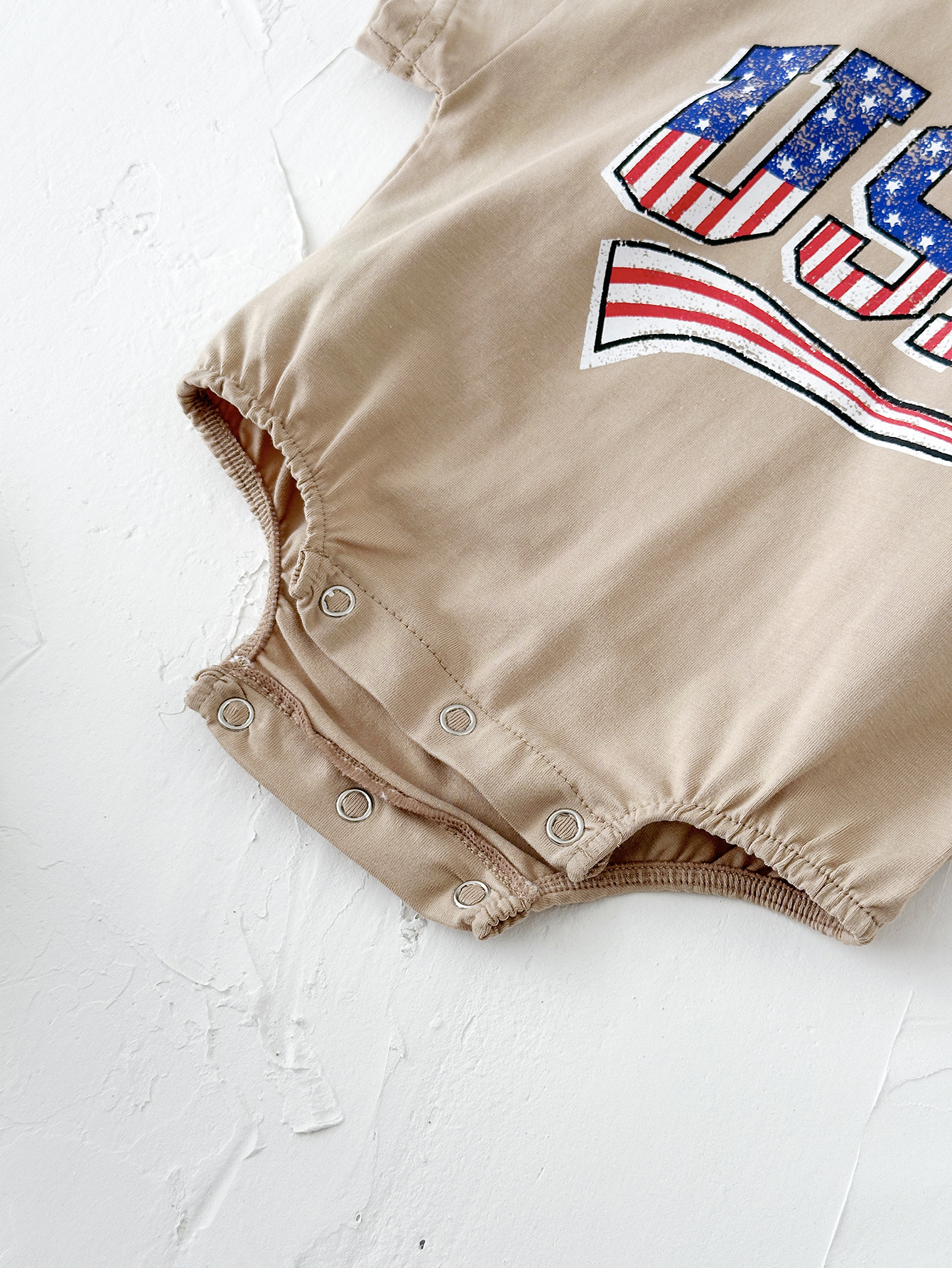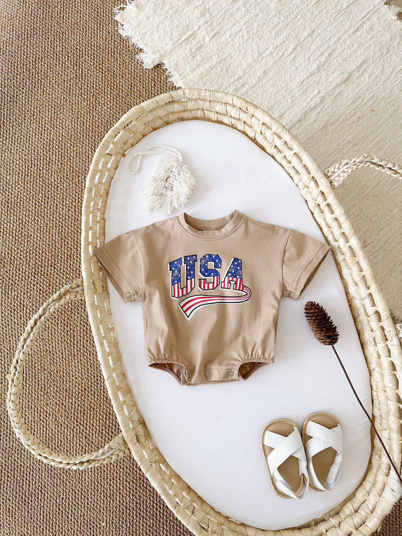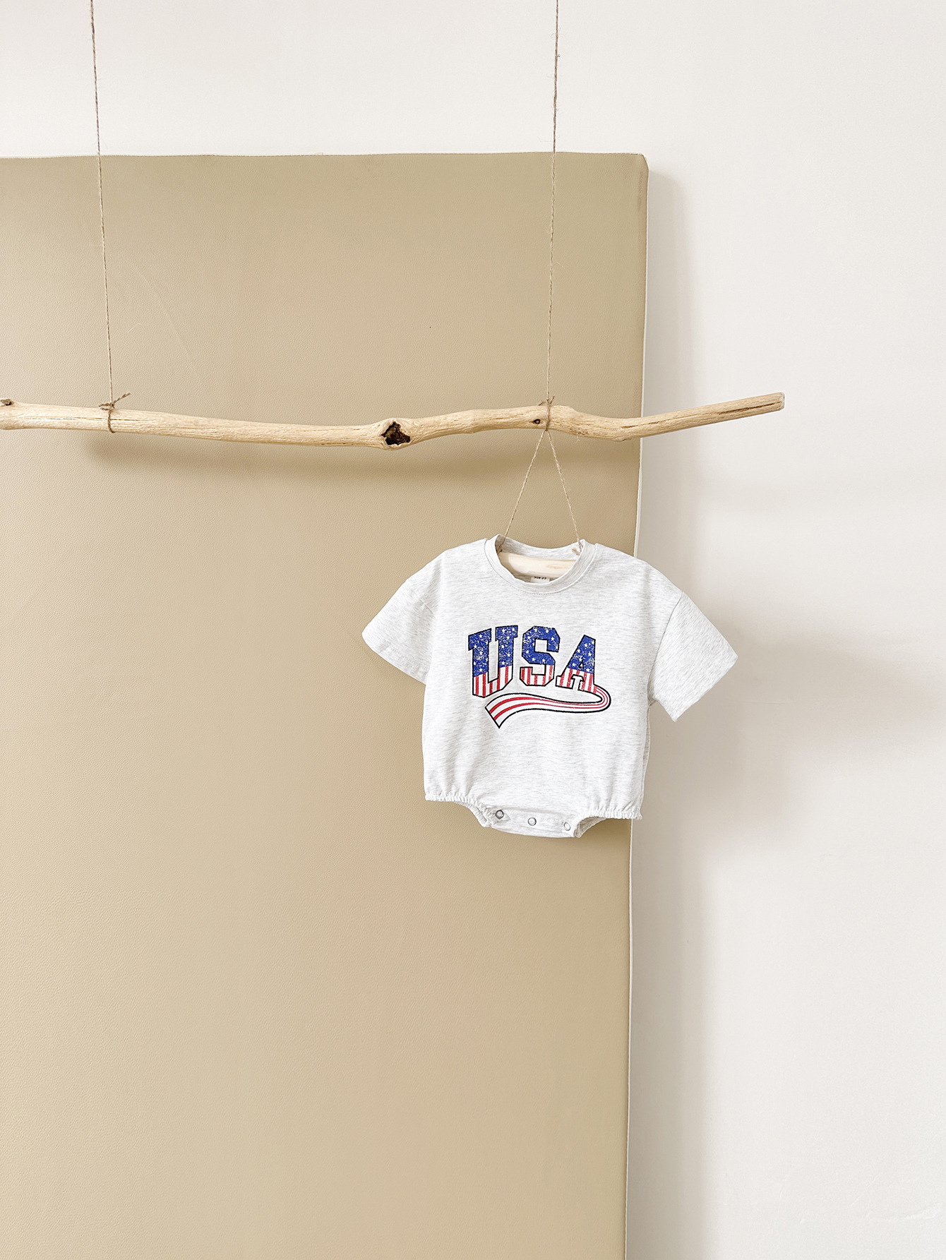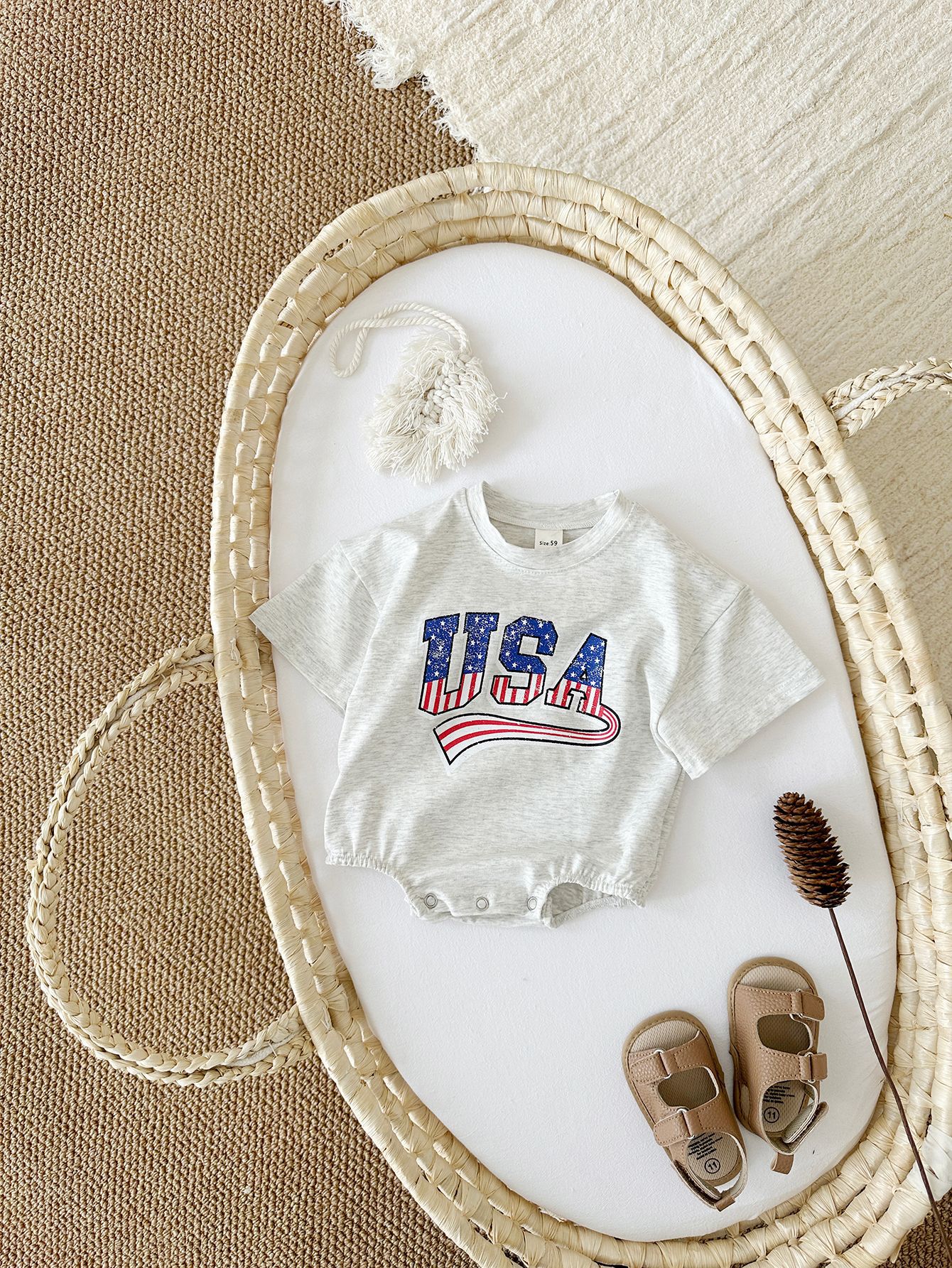 국경 간 여름 신생아 등반 세트 아기 편지 인쇄 반팔 아기 점프 수트 여름 점프 수트