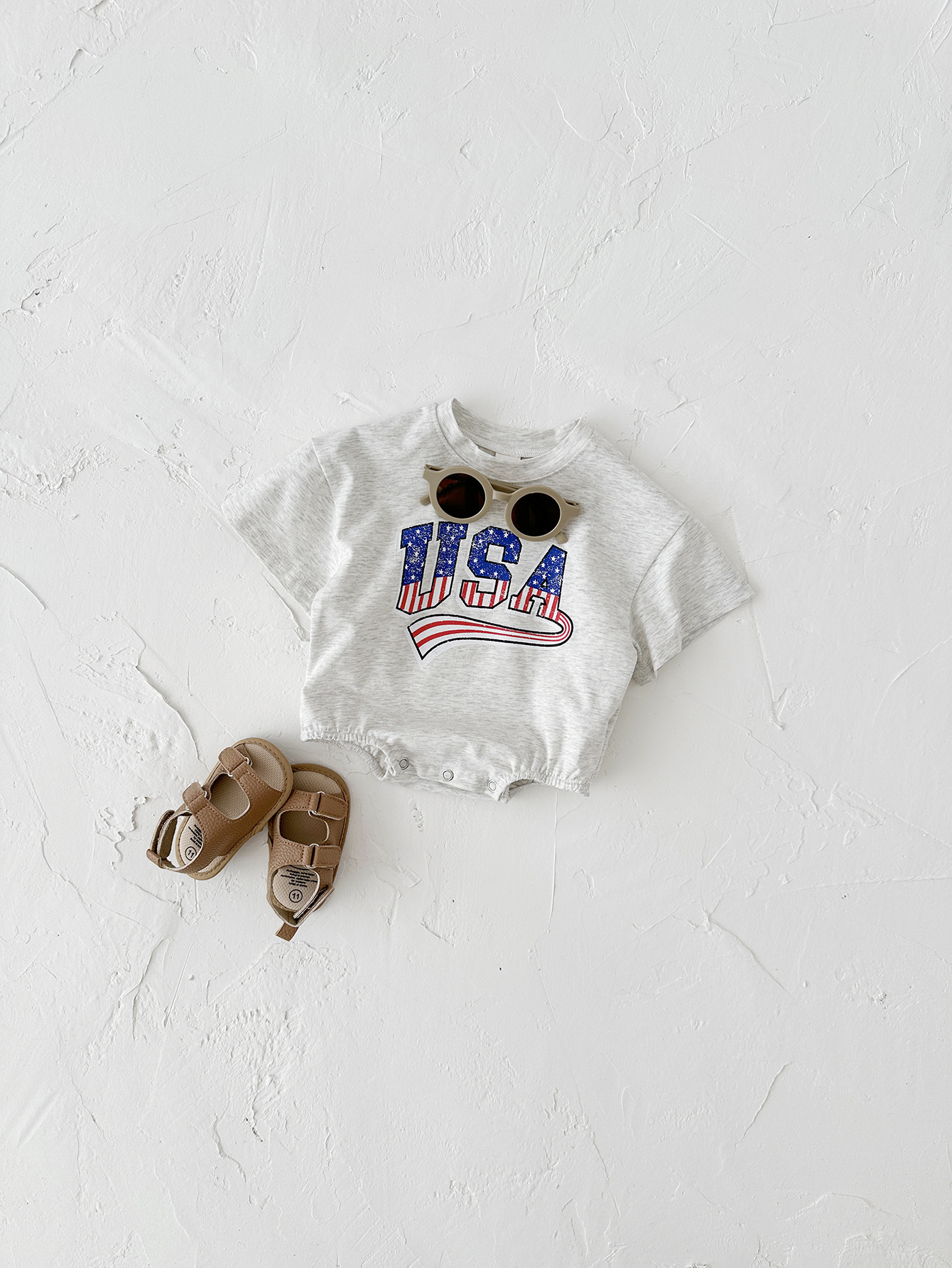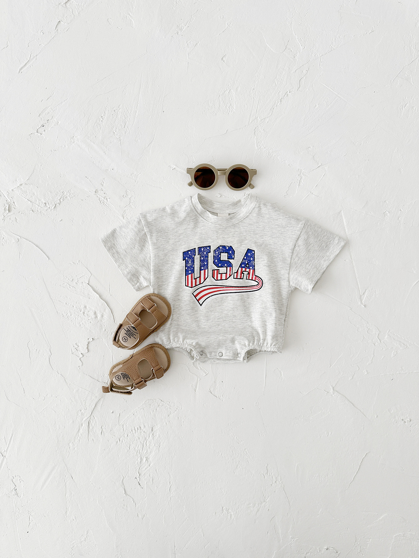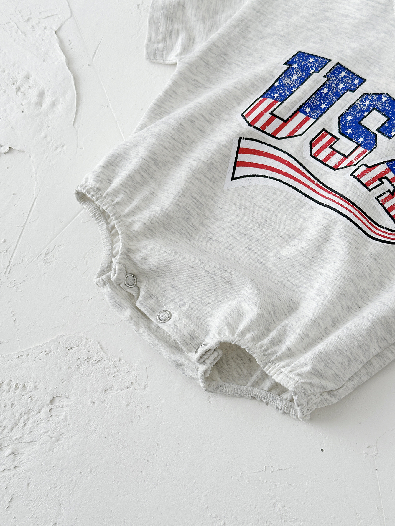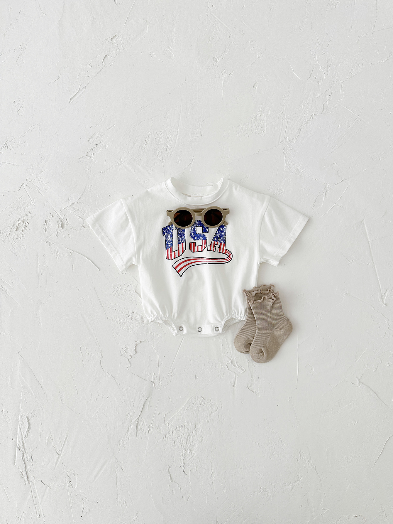 국경 간 여름 신생아 등반 세트 아기 편지 인쇄 반팔 아기 점프 수트 여름 점프 수트