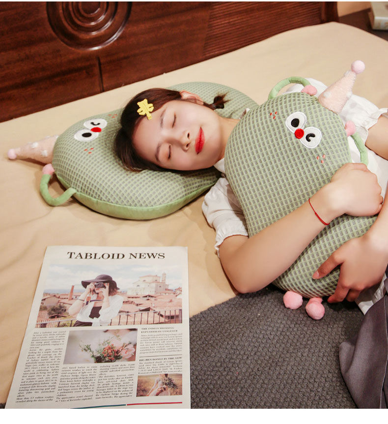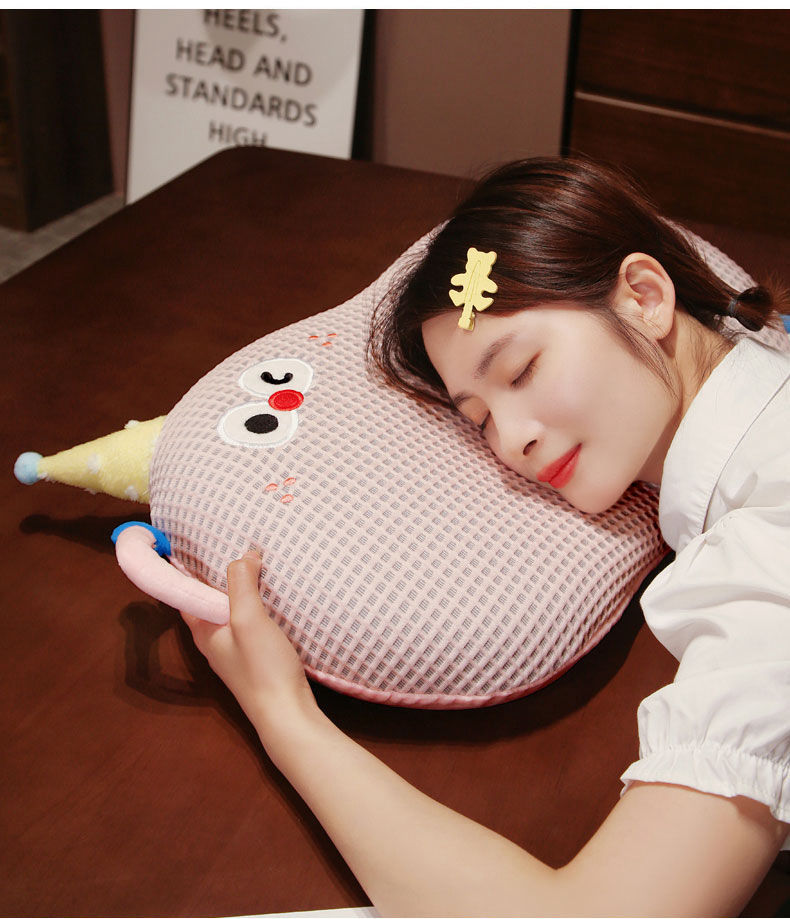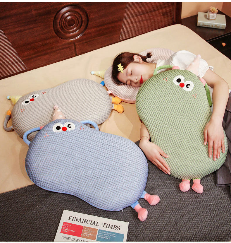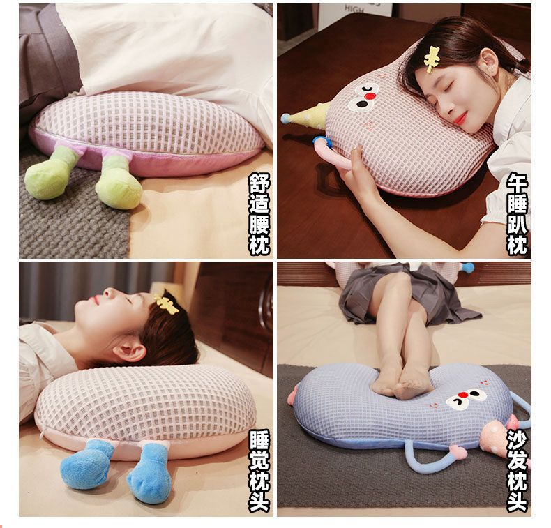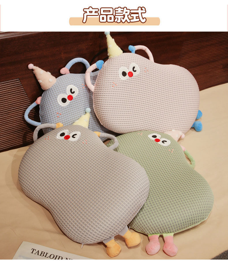 Bixin 만화 아이스 실크 메모리면 베개 와플 도파민 배꼽 베개 낮잠 베개 부드러운 쿠션