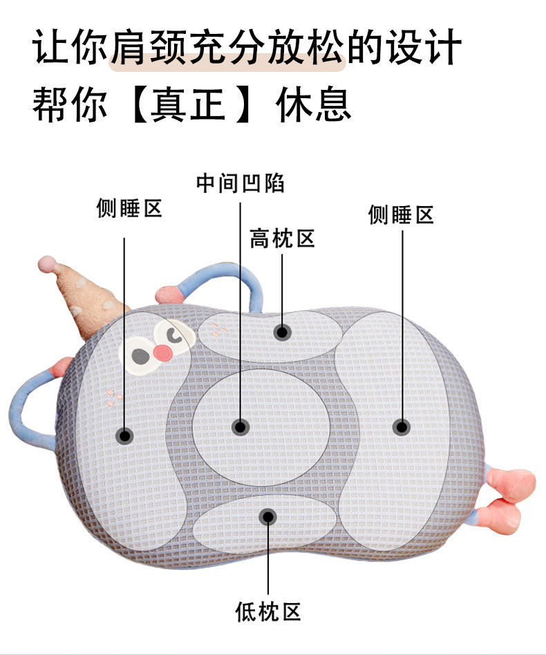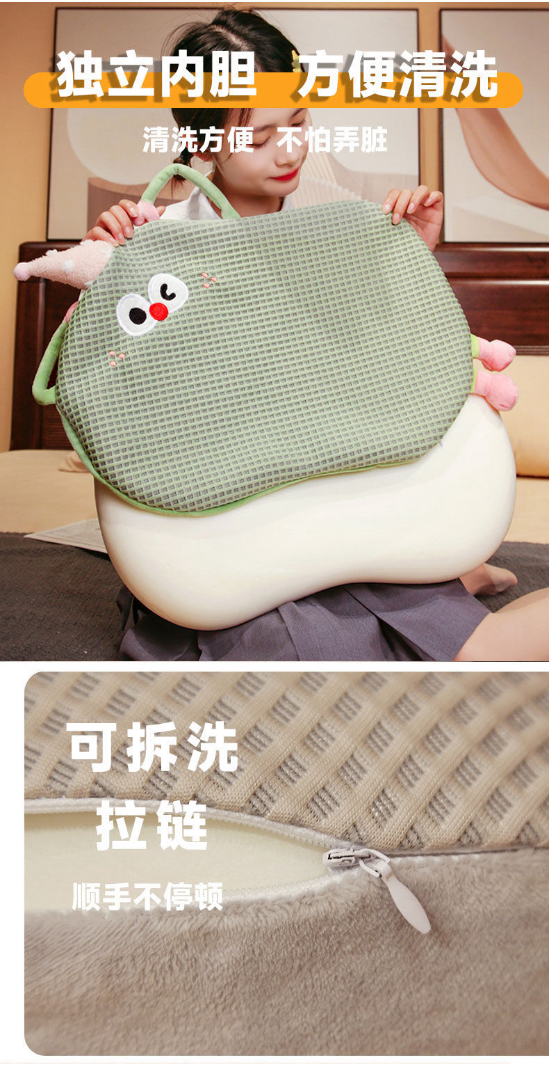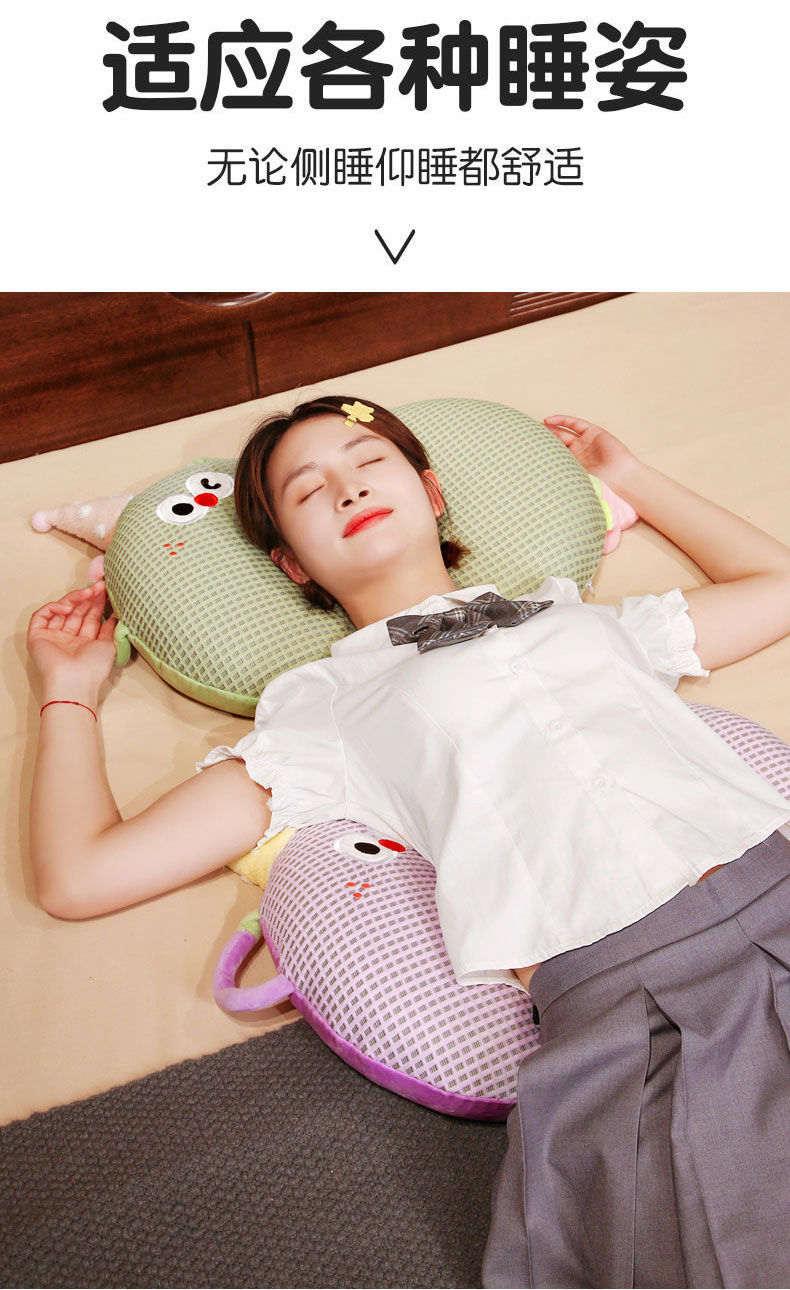 Bixin 만화 아이스 실크 메모리면 베개 와플 도파민 배꼽 베개 낮잠 베개 부드러운 쿠션