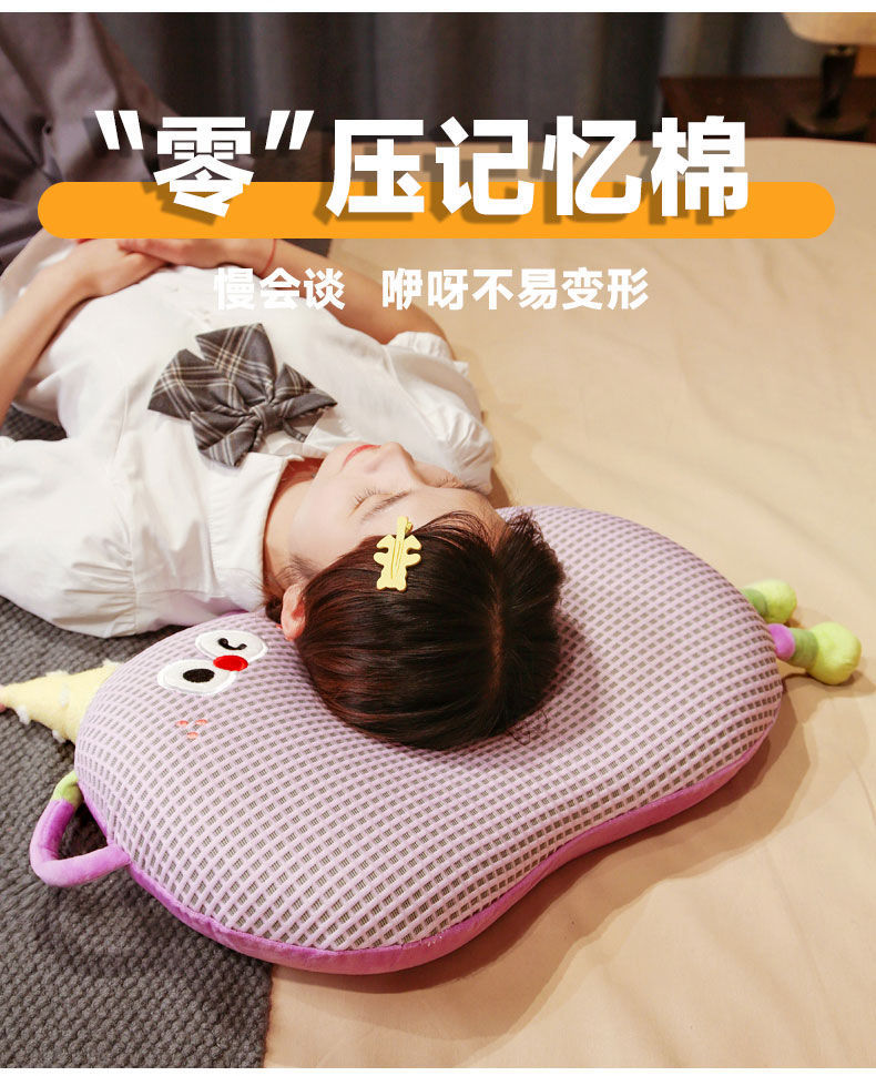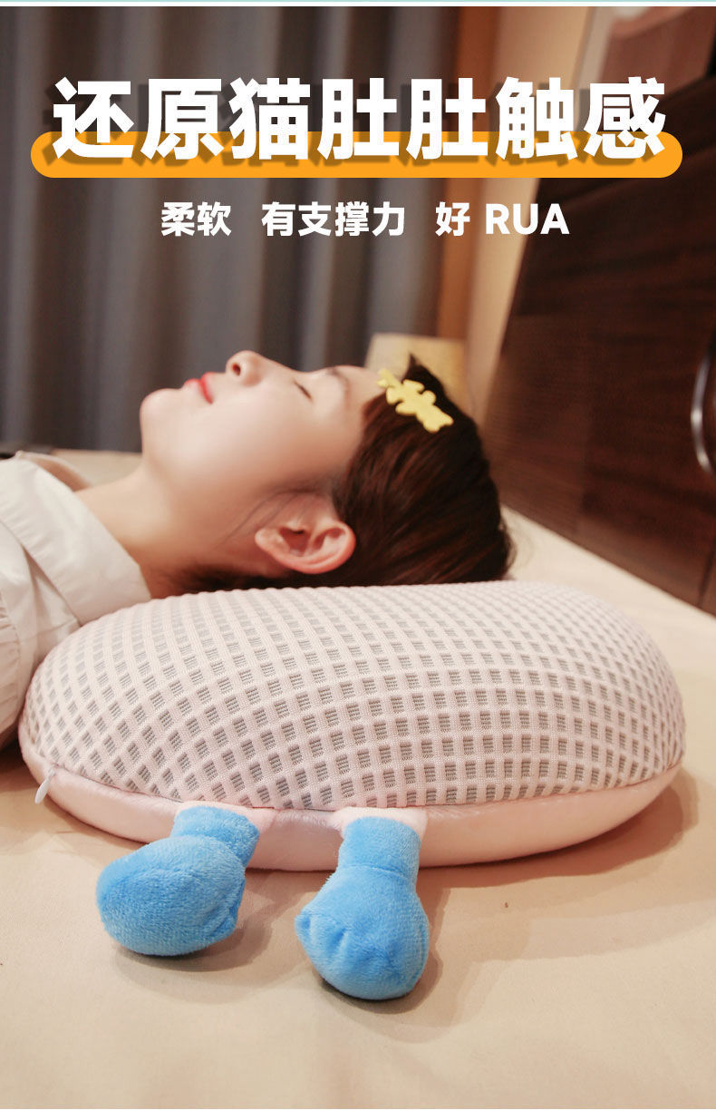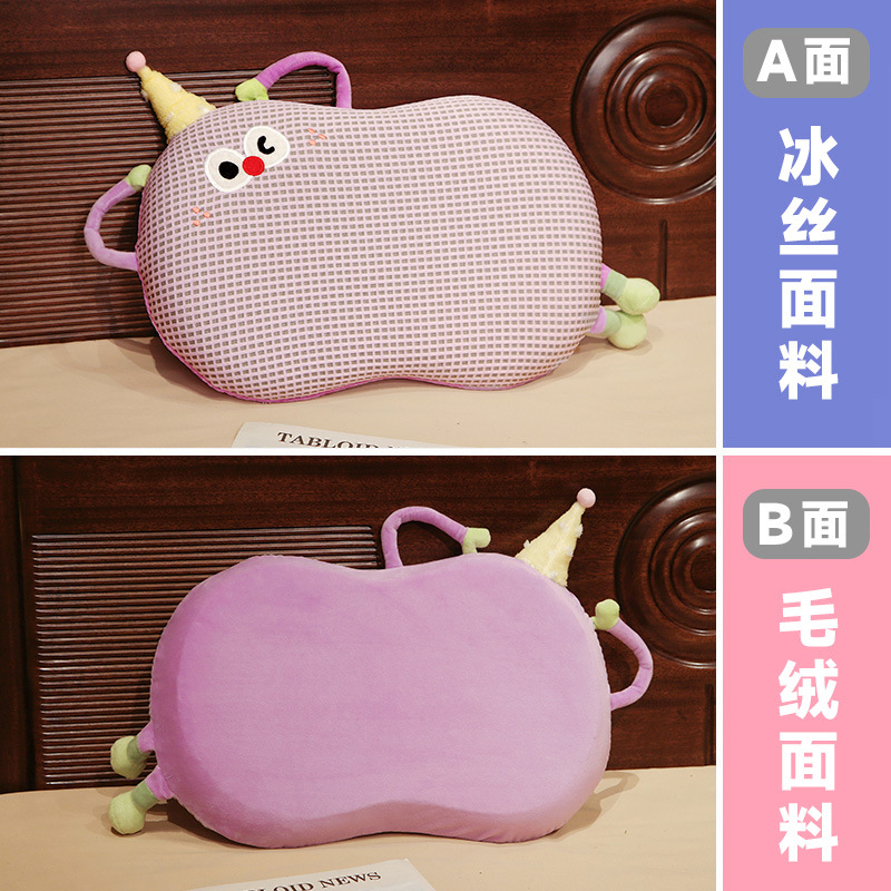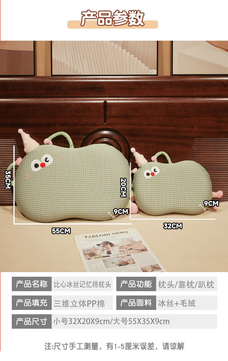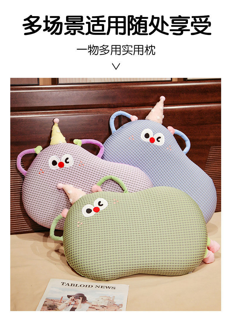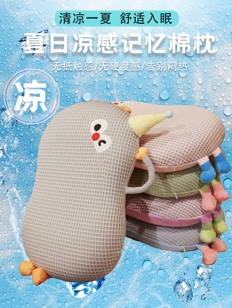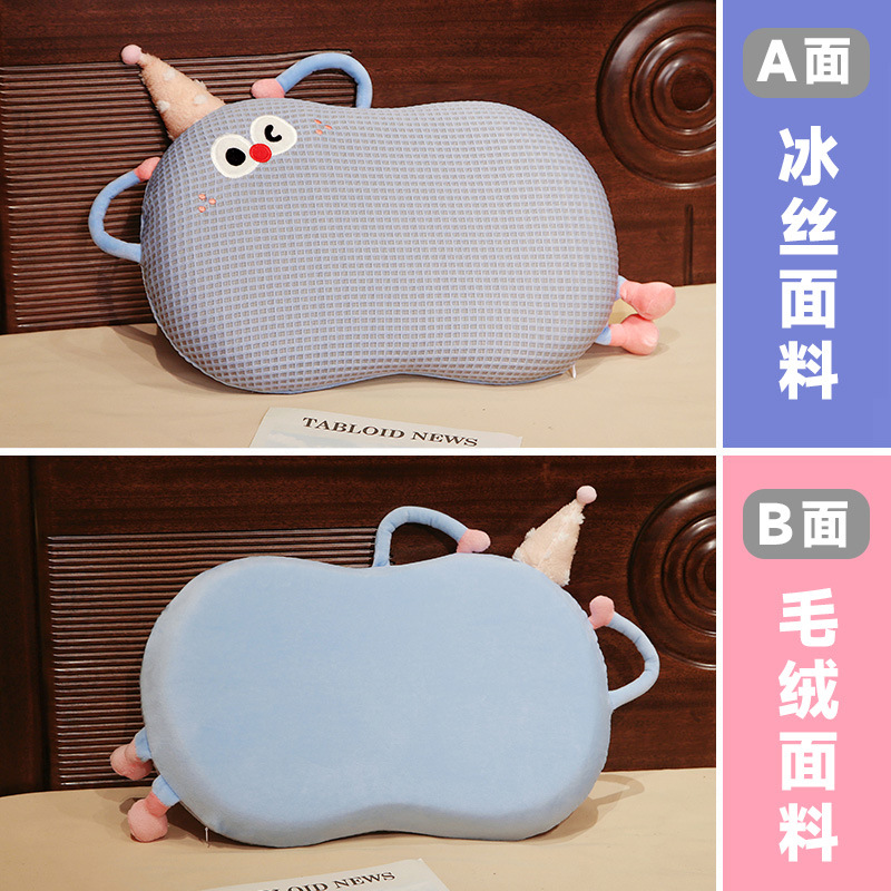 Bixin 만화 아이스 실크 메모리면 베개 와플 도파민 배꼽 베개 낮잠 베개 부드러운 쿠션스토어 가기