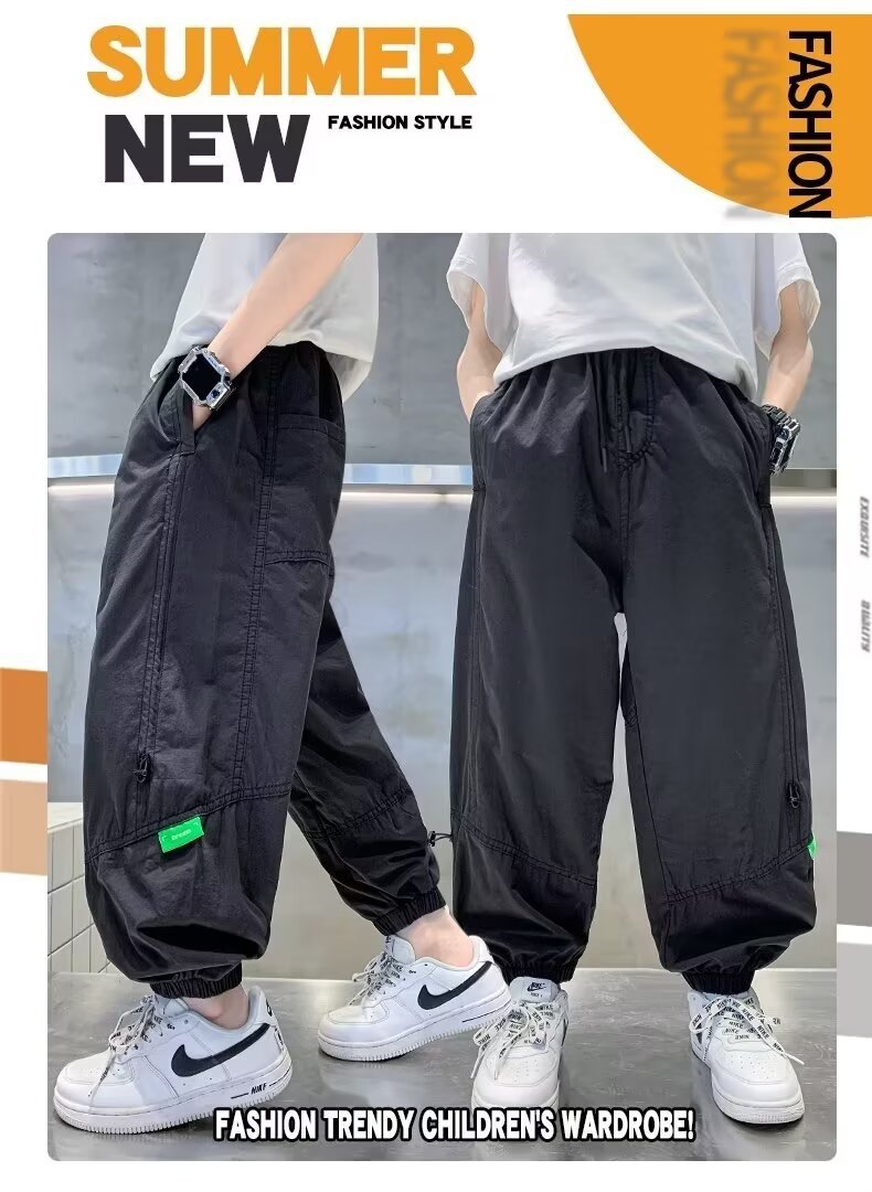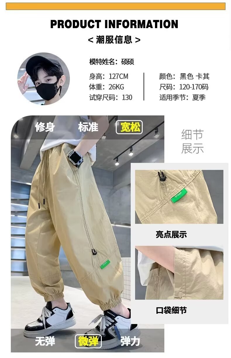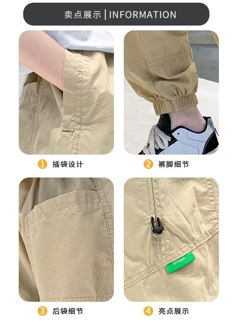 일본식 툴링 바지 어린이 봄과 여름 블랙 트렌디 브랜드 박제 바지 캐주얼 바지 미국 스타일 플러스 사이즈 느슨한 바지