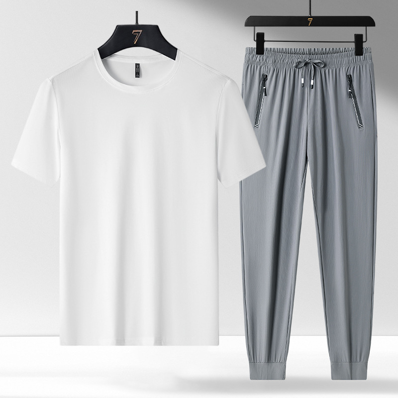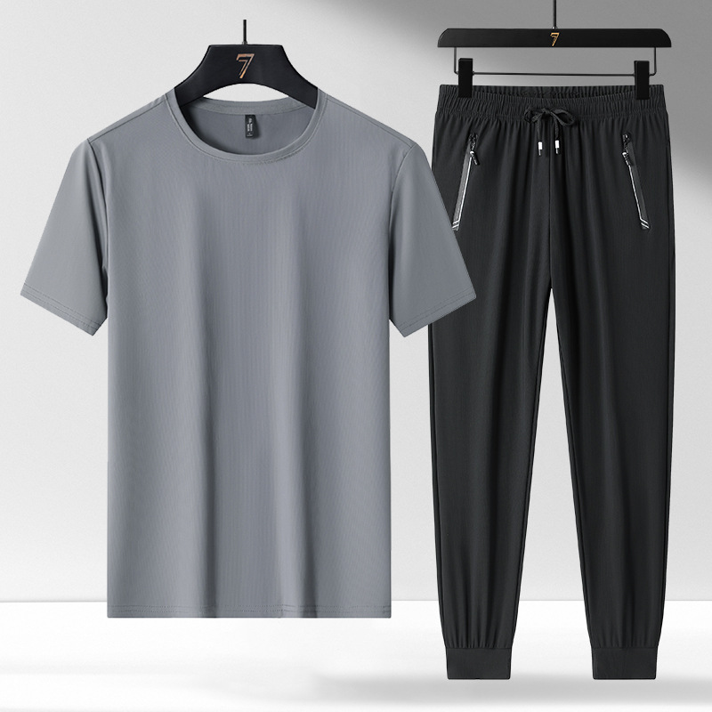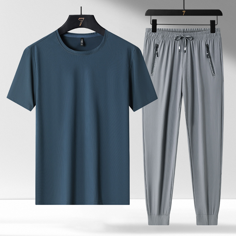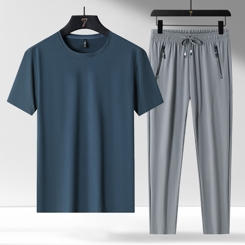 M-7XL 여름 플러스 사이즈 아이스 실크 캐주얼 세트 남성 플러스 사이즈 느슨한 여름 중년 및 노인 아빠를위한 반팔 티셔츠