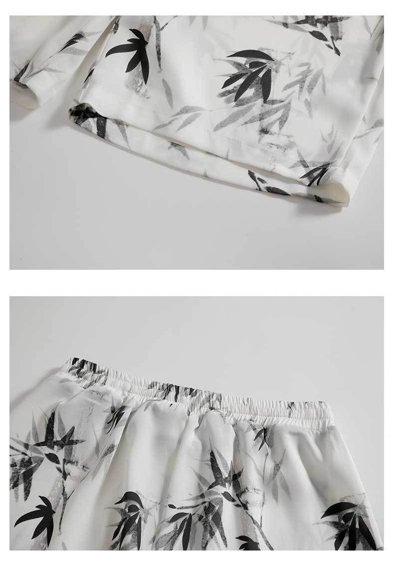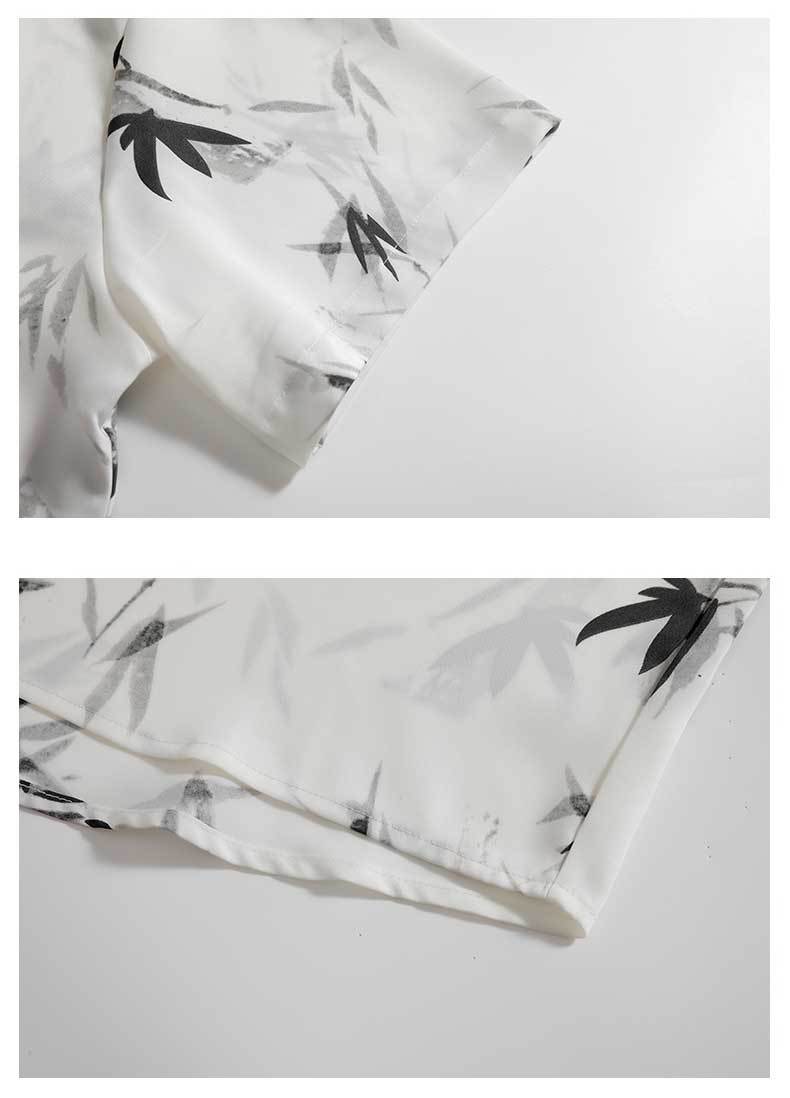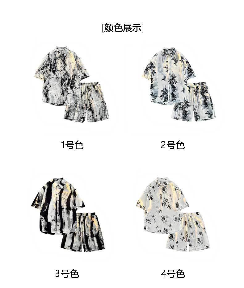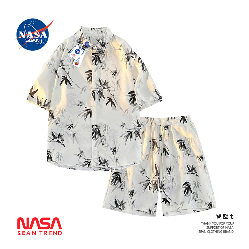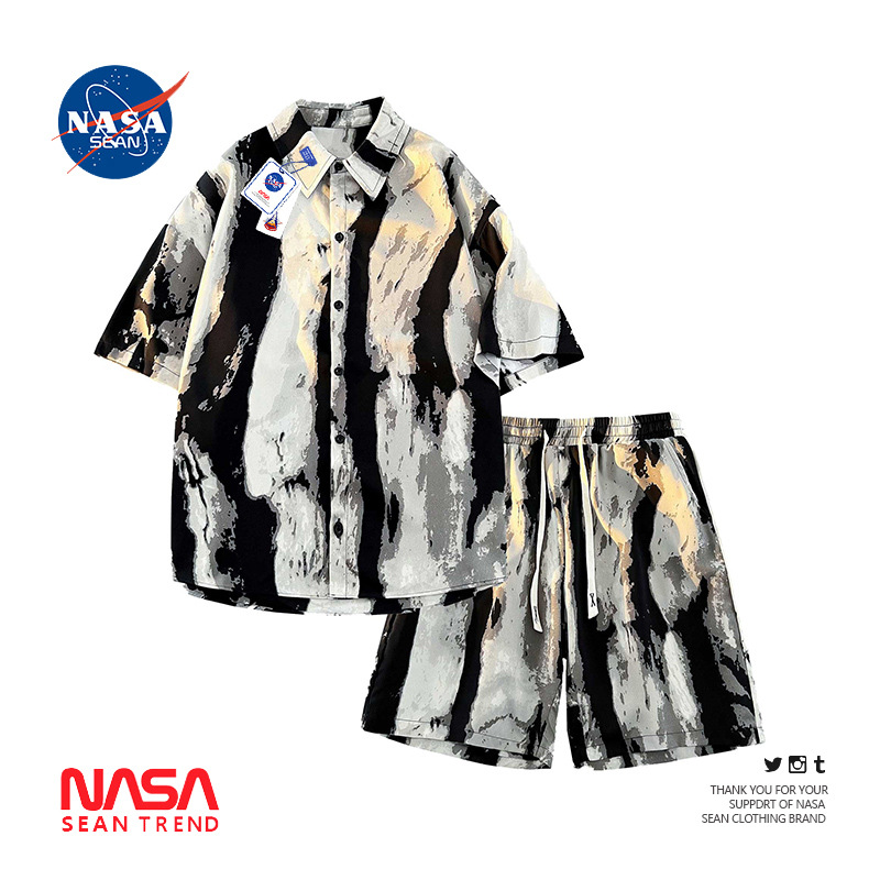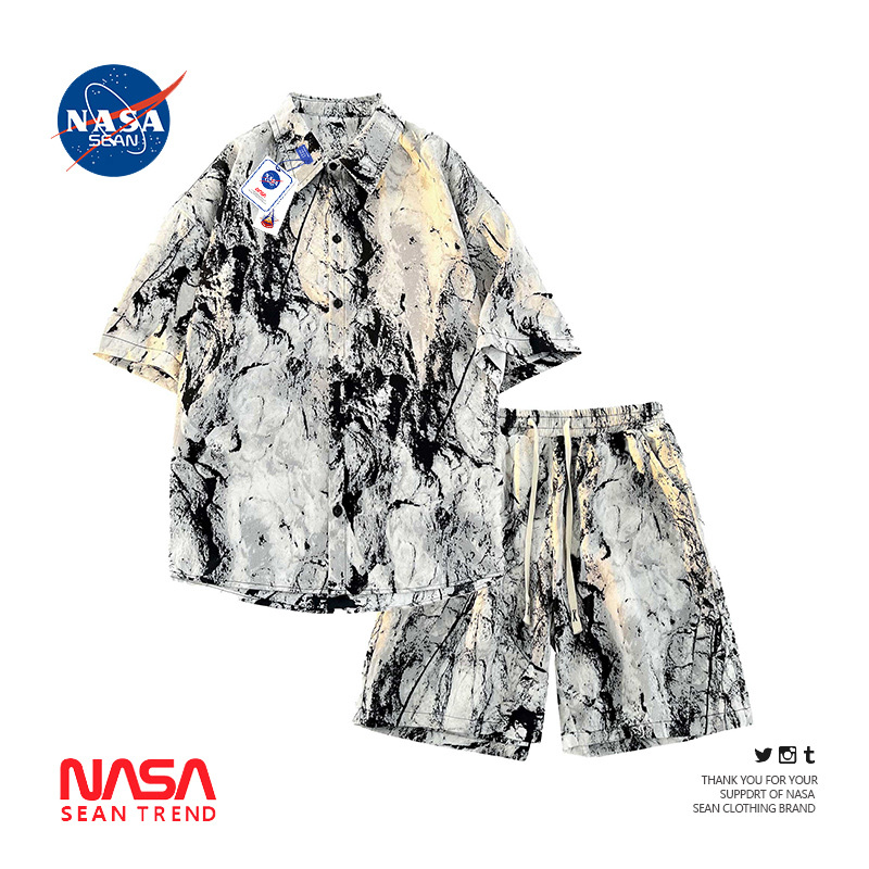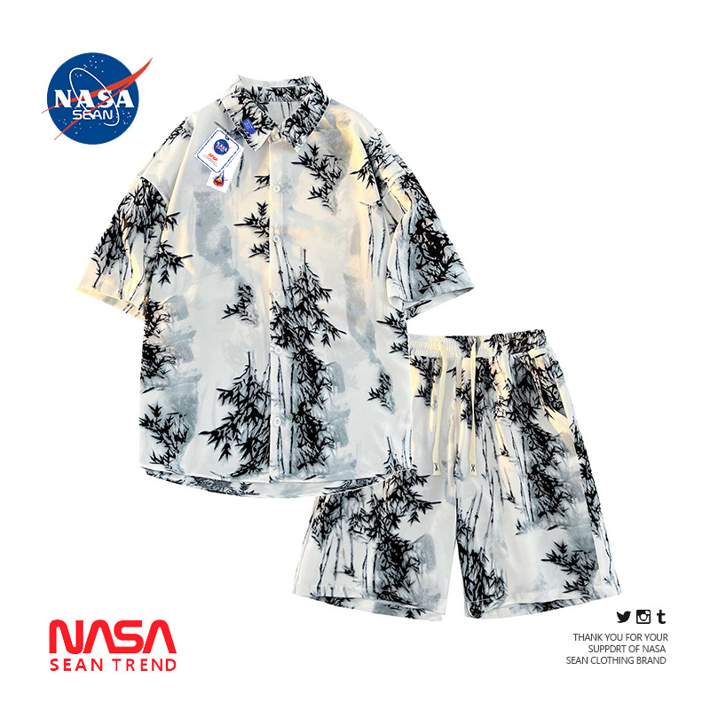 NASA 잉크 셔츠 남성 반팔 2024 여름 하이 엔드 아이스 실크 루즈 셔츠 새로운 중국 스타일 남성 세트