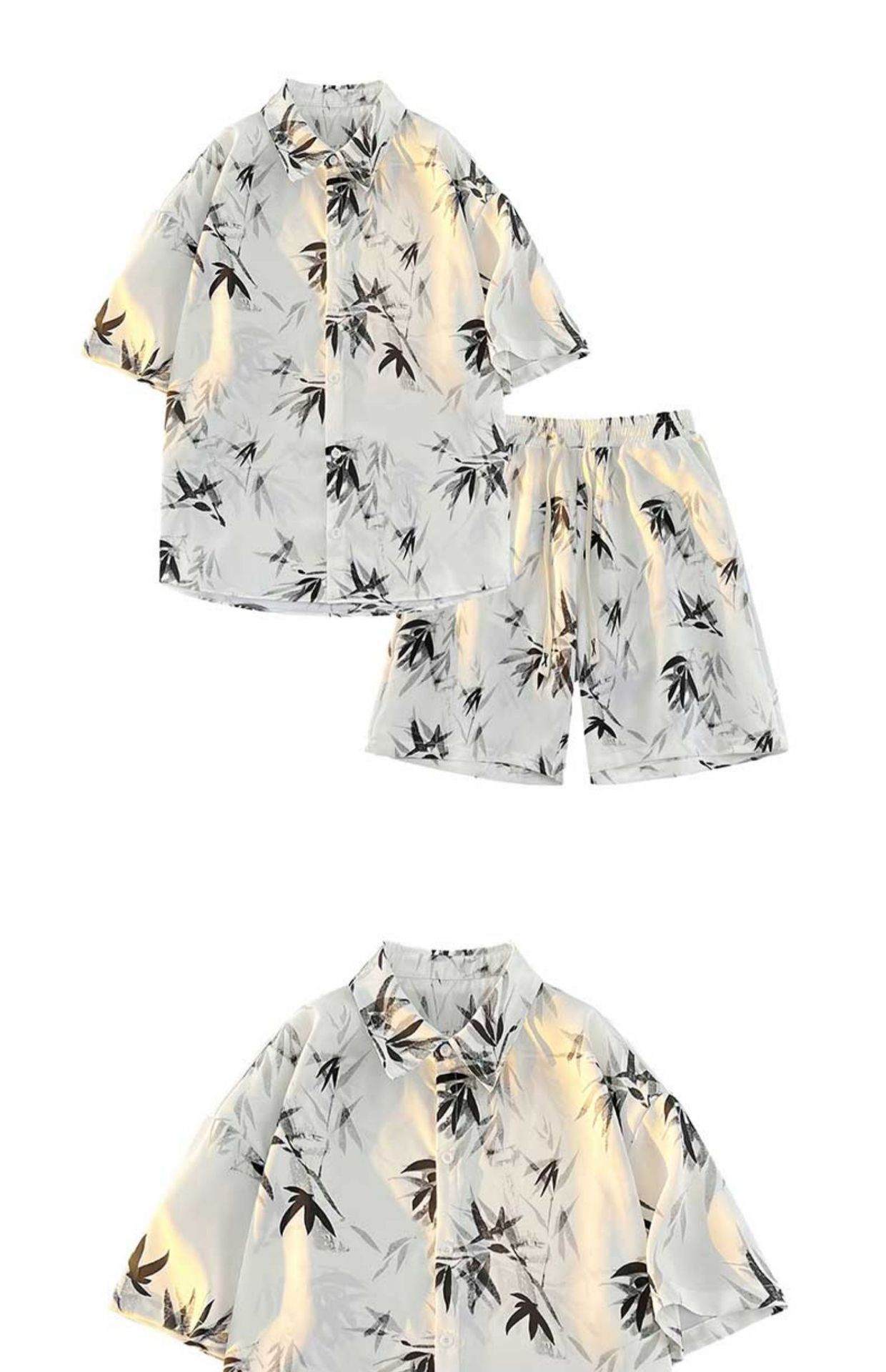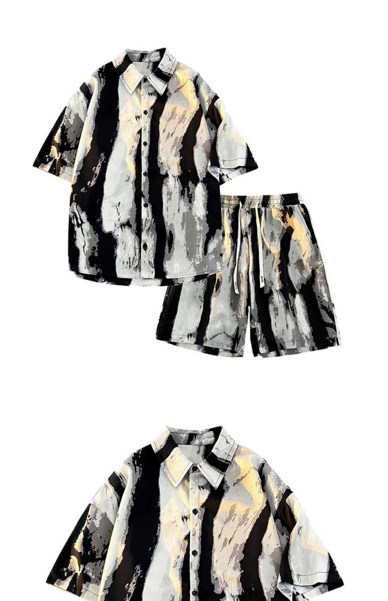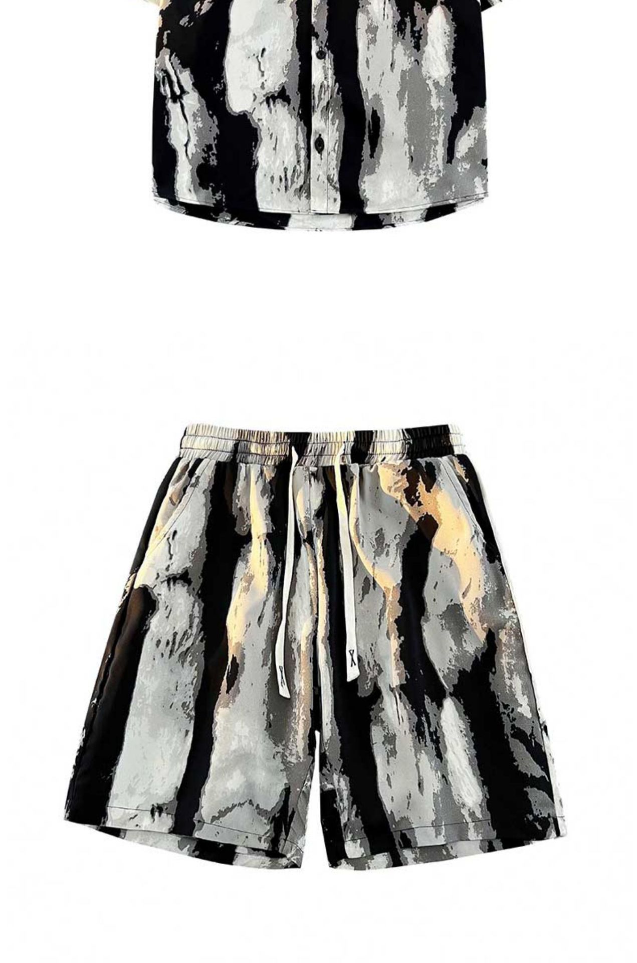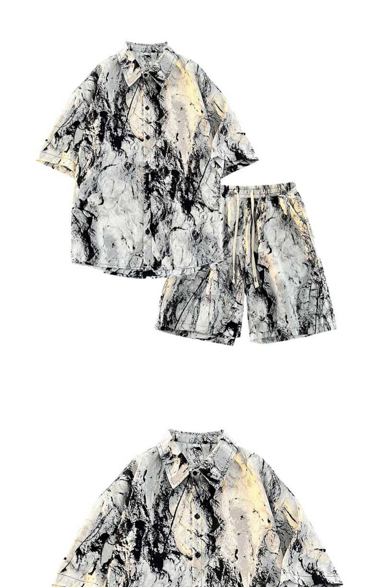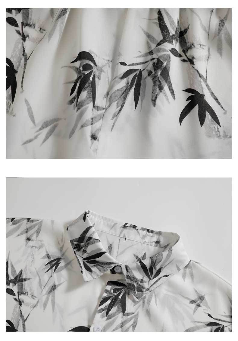 NASA 잉크 셔츠 남성 반팔 2024 여름 하이 엔드 아이스 실크 루즈 셔츠 새로운 중국 스타일 남성 세트