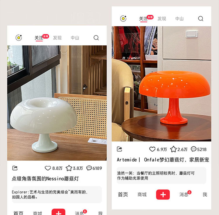 2025년 인기 상품 덴마크 버섯 테이블 램프 북유럽 스타일 장식 심플 거실 침대 옆 USB 창의적인 테이블 램프스토어 가기