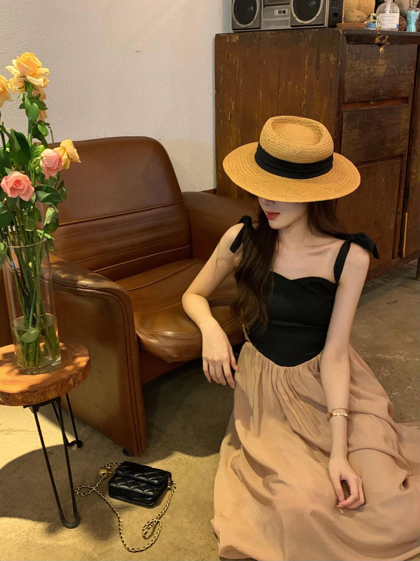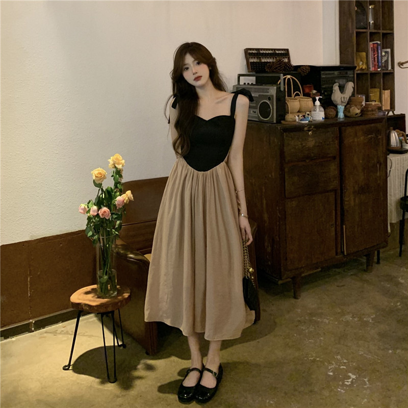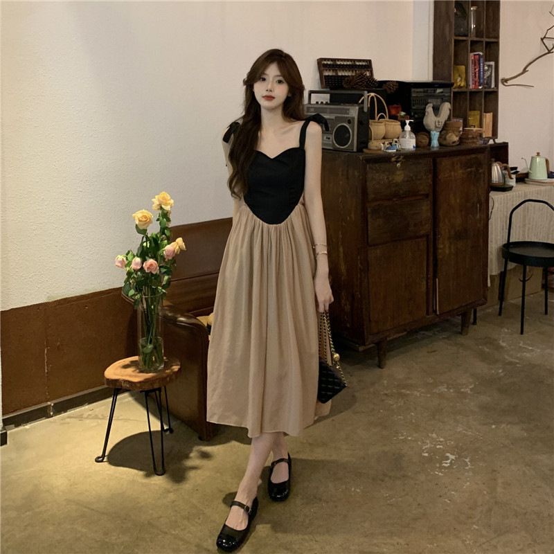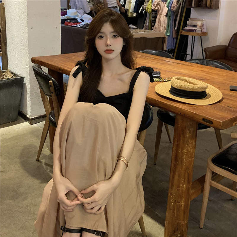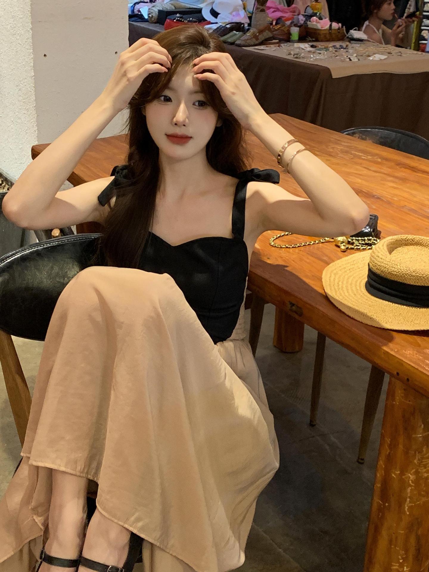 프랑스 스타일 슬립 스커트 민소매 원피스 여성의 2024 년 새로운 여름 틈새 디자인 센스 스커트 A 라인 스커트 롱 스커트