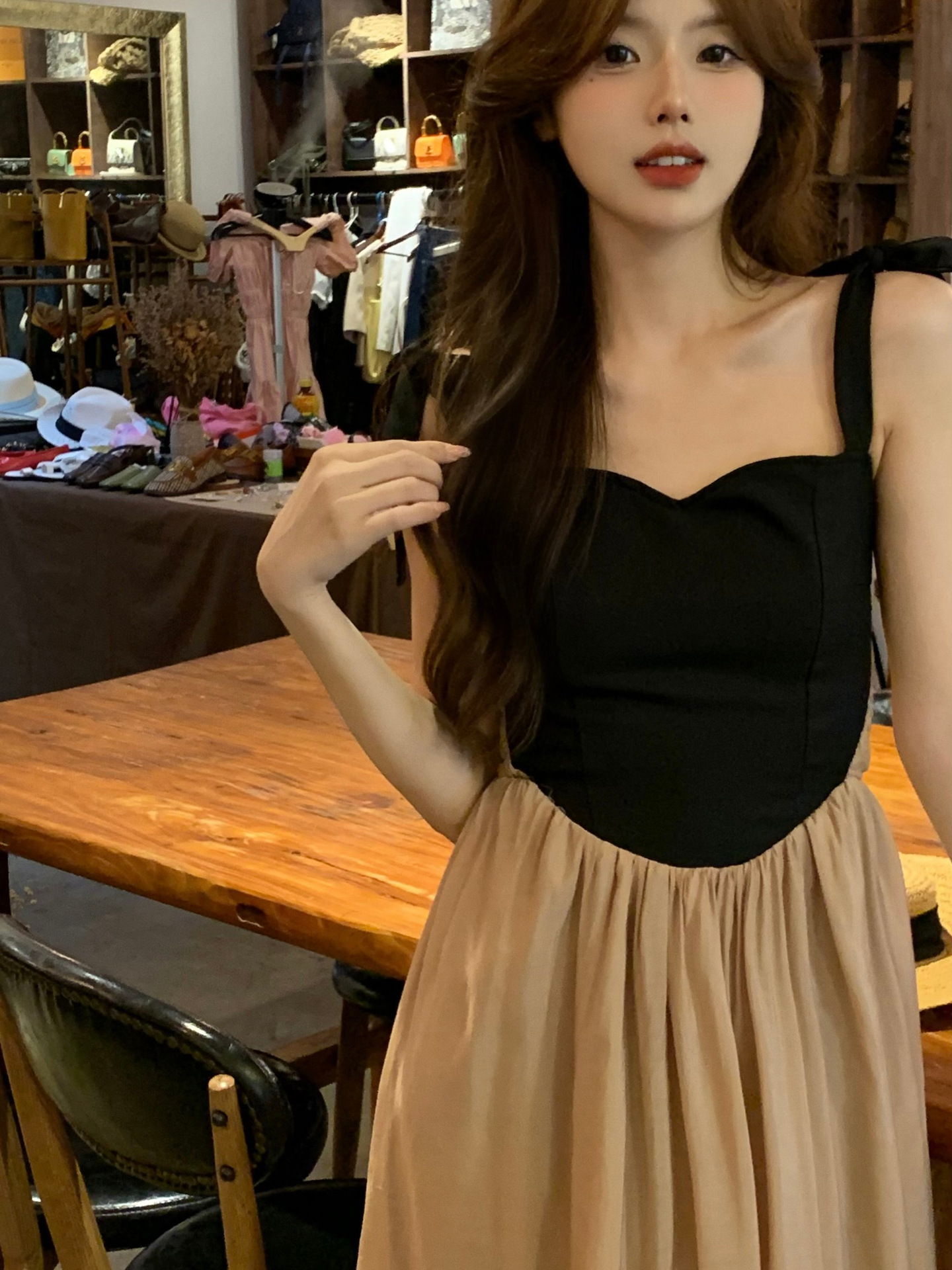 프랑스 스타일 슬립 스커트 민소매 원피스 여성의 2024 년 새로운 여름 틈새 디자인 센스 스커트 A 라인 스커트 롱 스커트스토어 가기