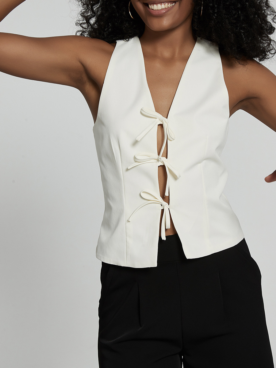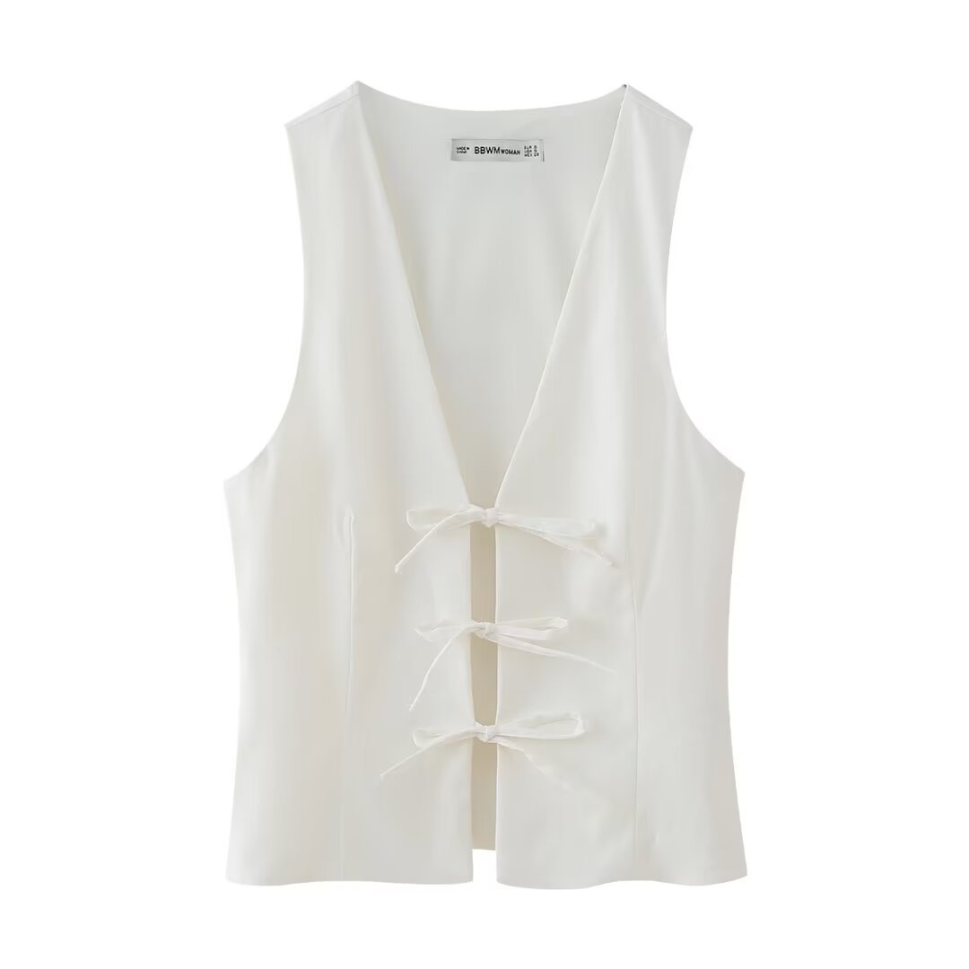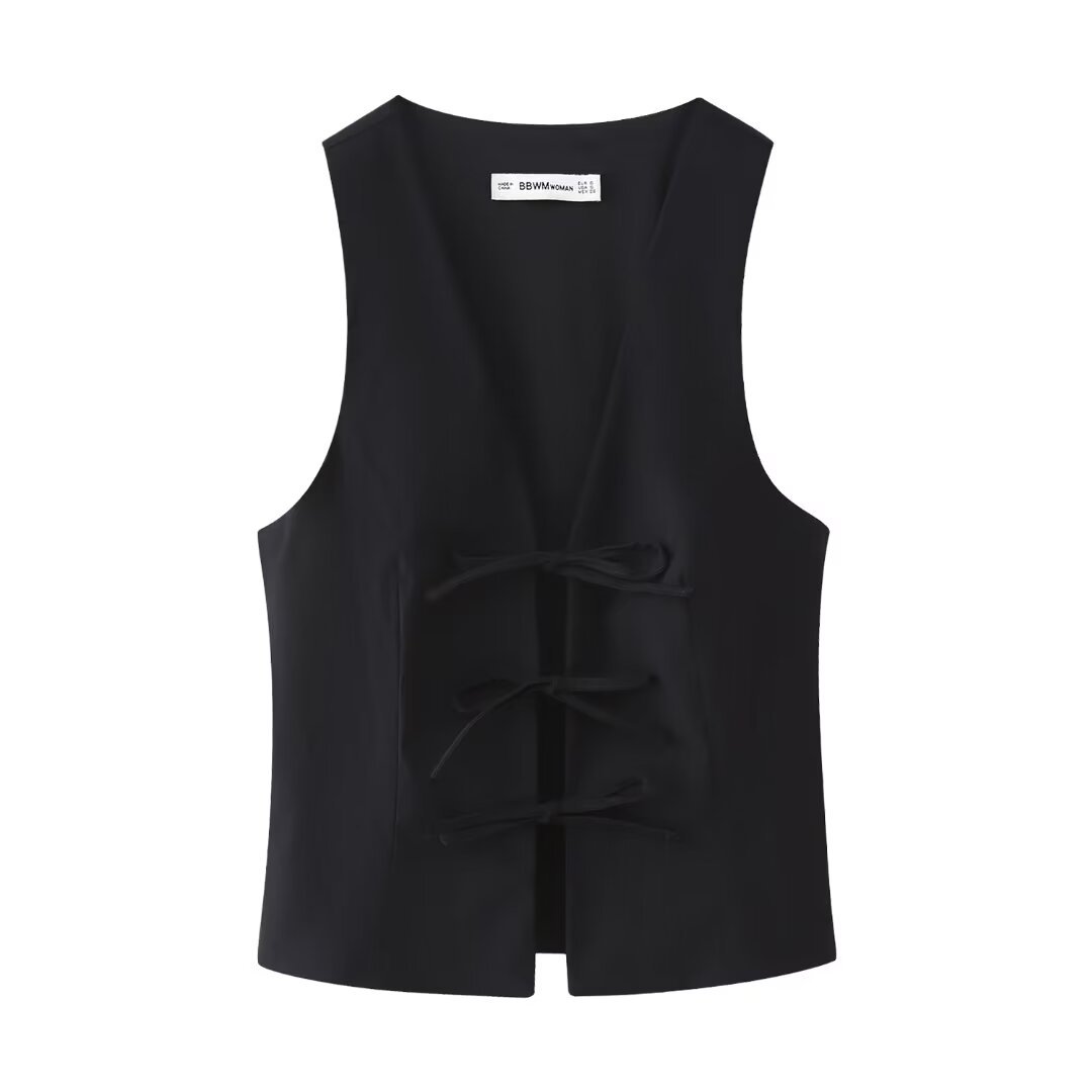 국경 간 여성 의류 도매 유럽과 미국 스타일의 나비 넥타이 슬림 조끼 여름 V 넥 민소매 최고 패션 조끼