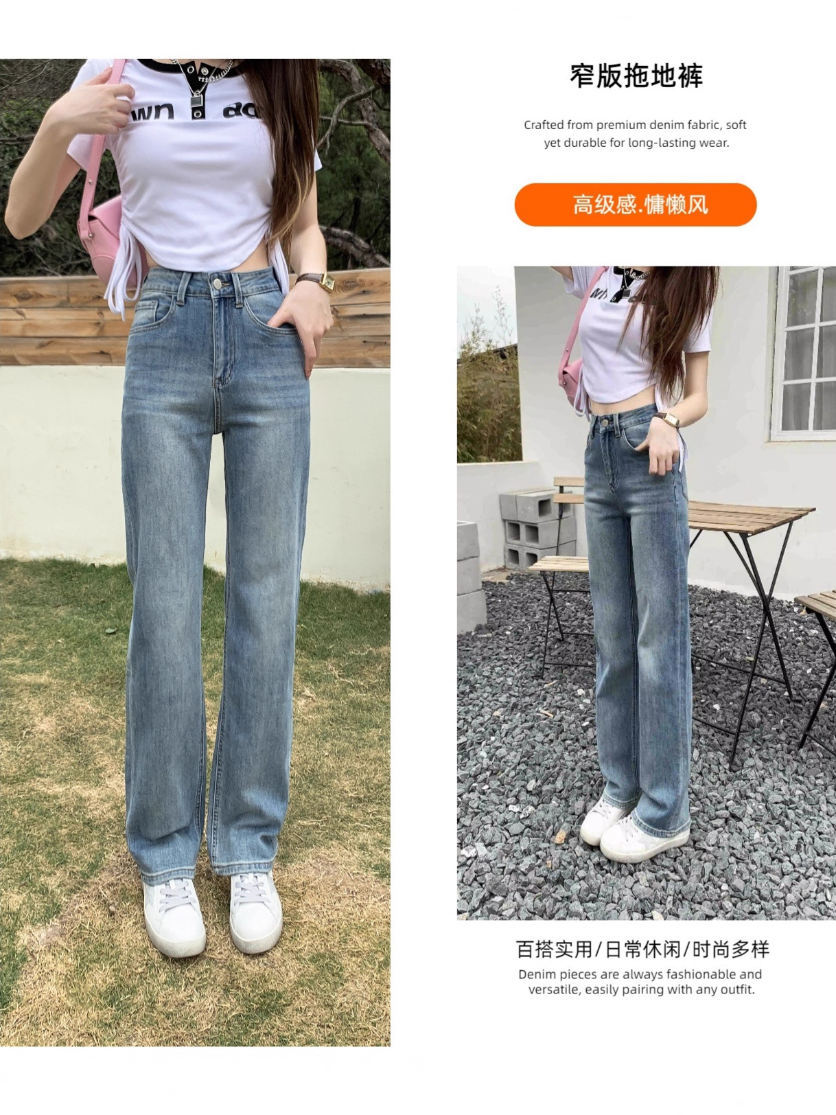 高腰显瘦牛仔裤