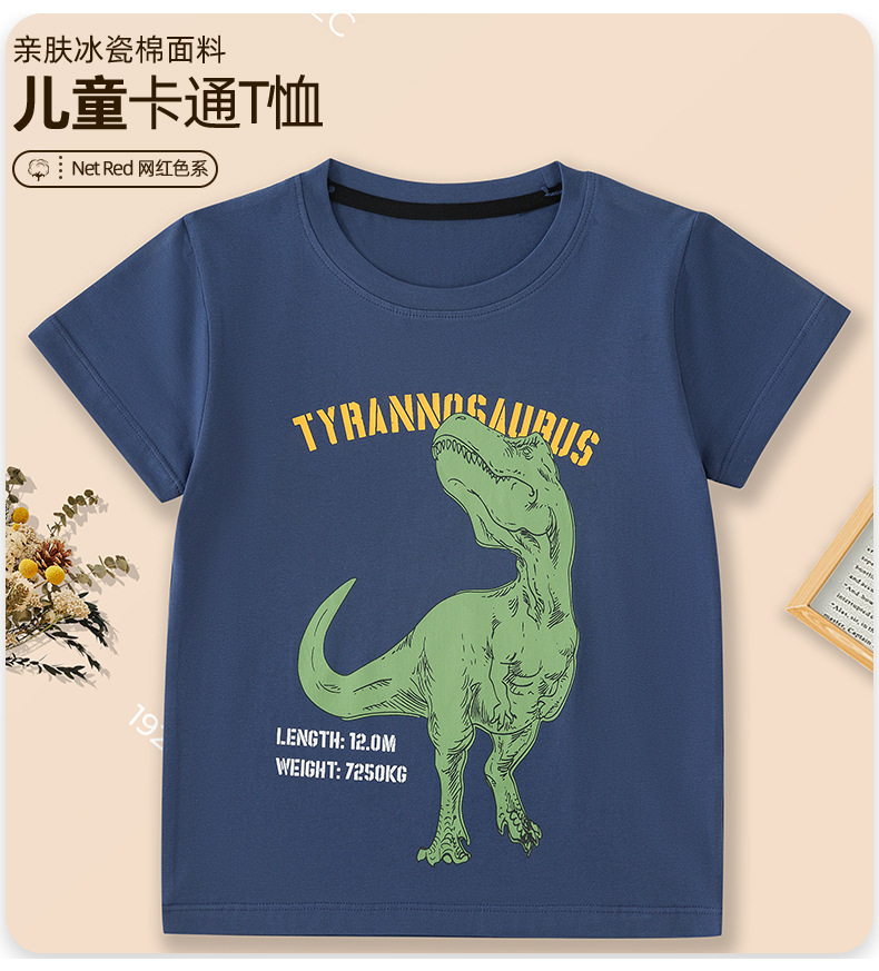 Jusen 어린이 티셔츠 여름 소년 여름 새로운 반팔 탑 패션 한국어 버전 인쇄 중간 어린이 아기 옷스토어 가기
