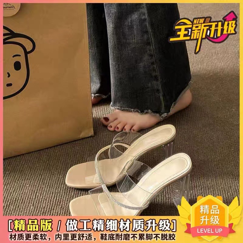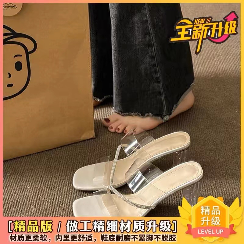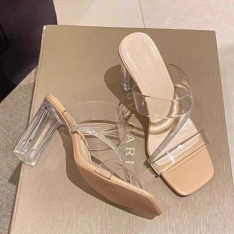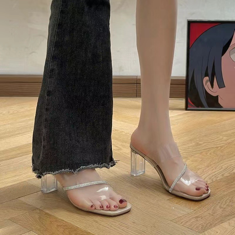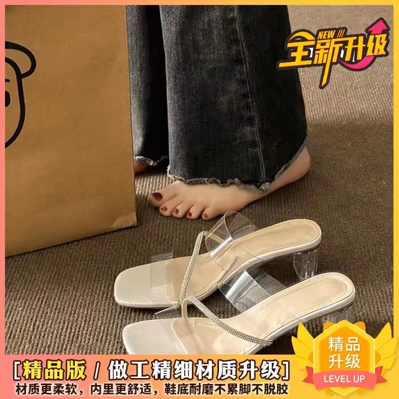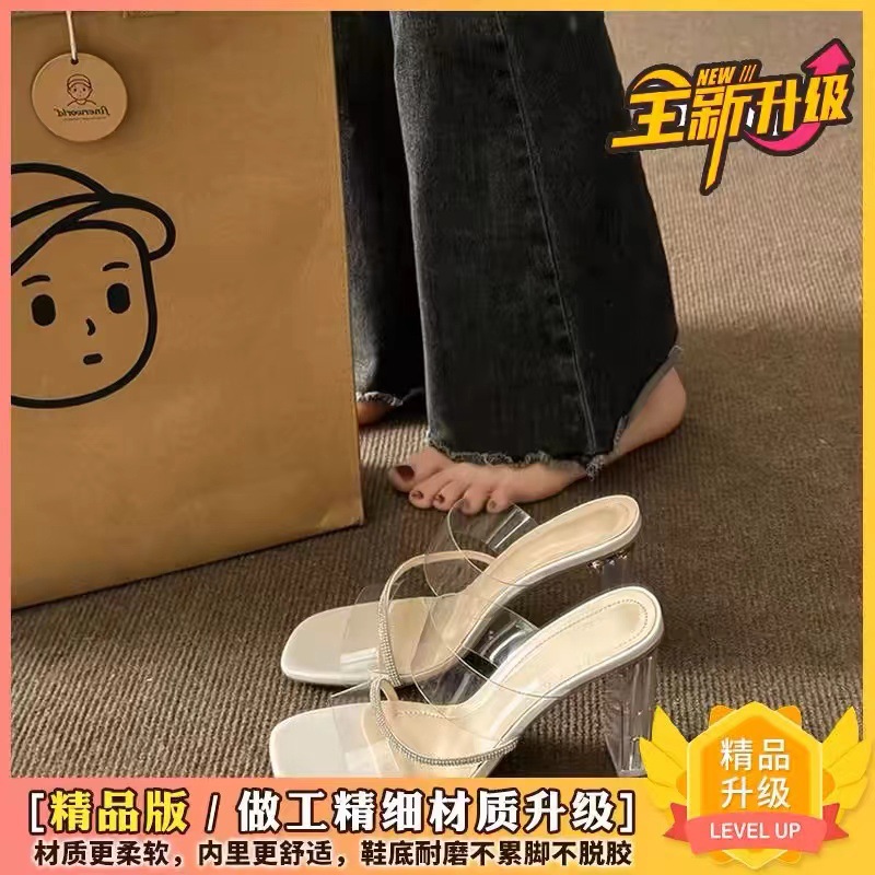 2025년 신상 다용도 큐빅 투명 샌들 여성 여름 굵은 굽 하이힐 요정 스타일 샌들 트렌드