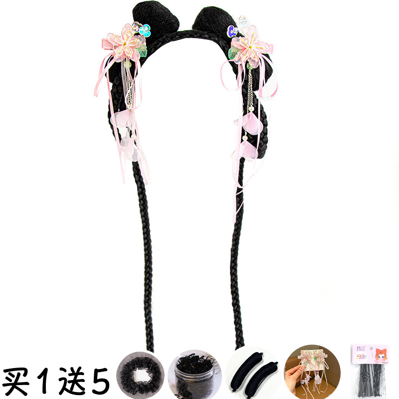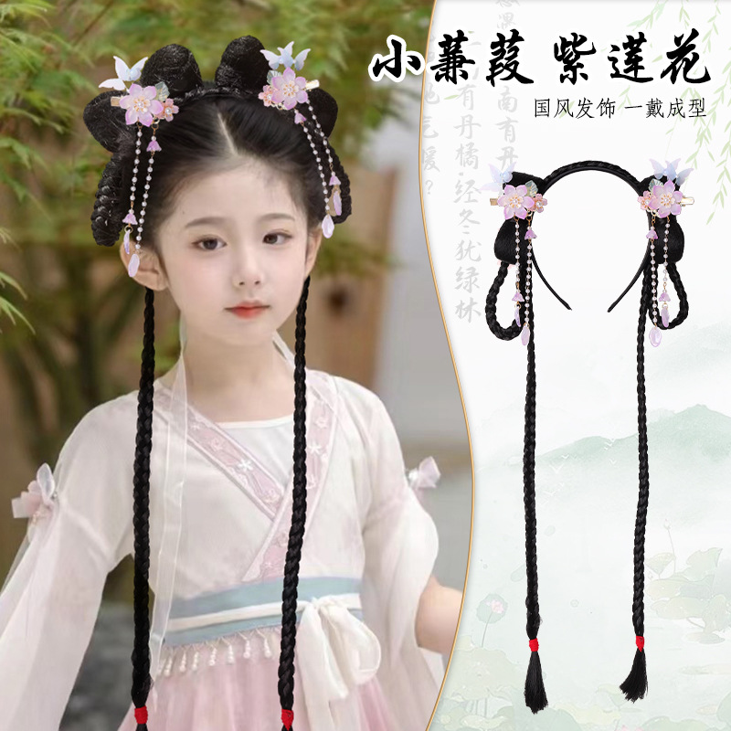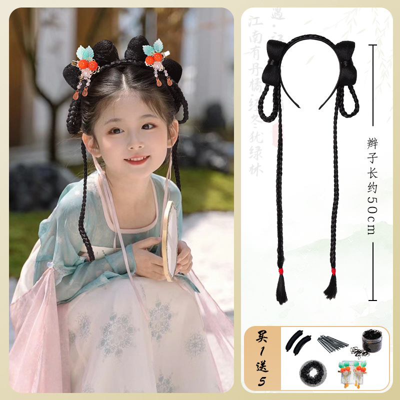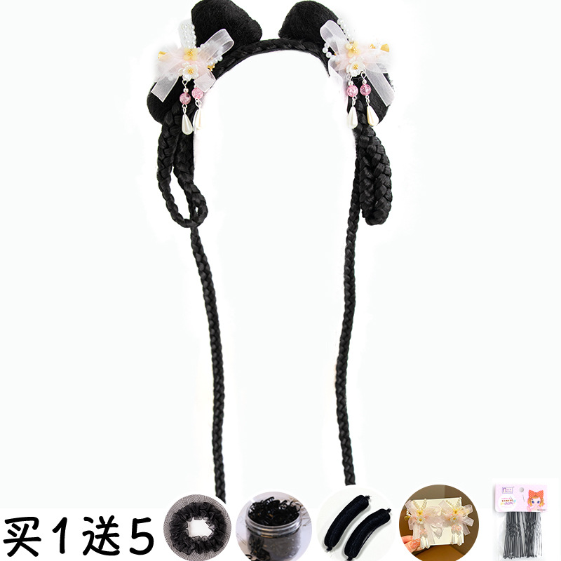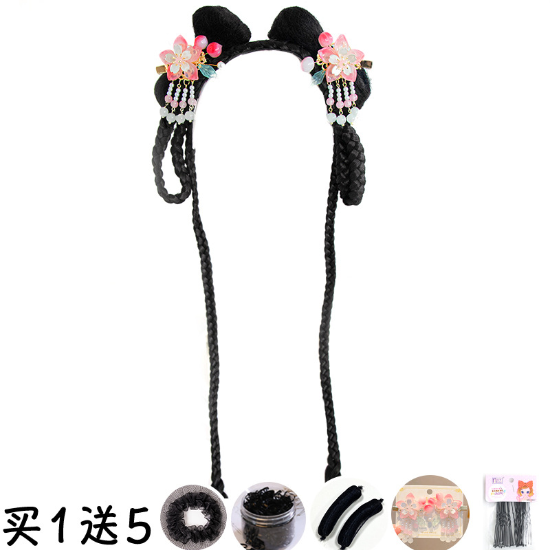 골동품 어린이 한푸 가발 가방 헤어 팩 고대 세트 일체형 헤어 후프 가발 소녀 스타일 헤어 액세서리 헤어 Bun 헤드웨어