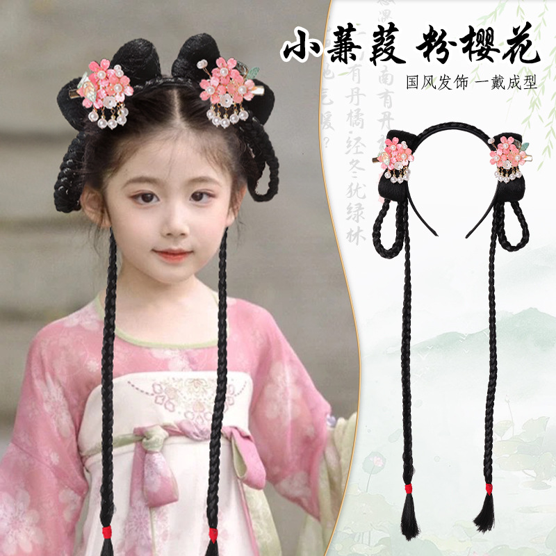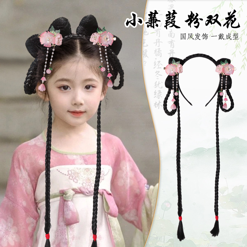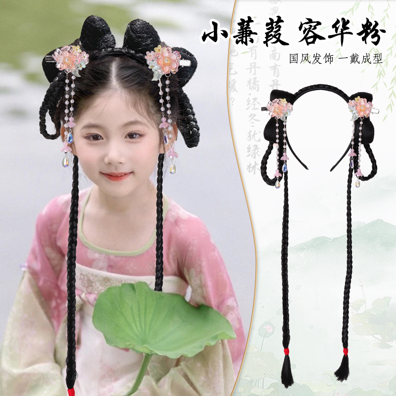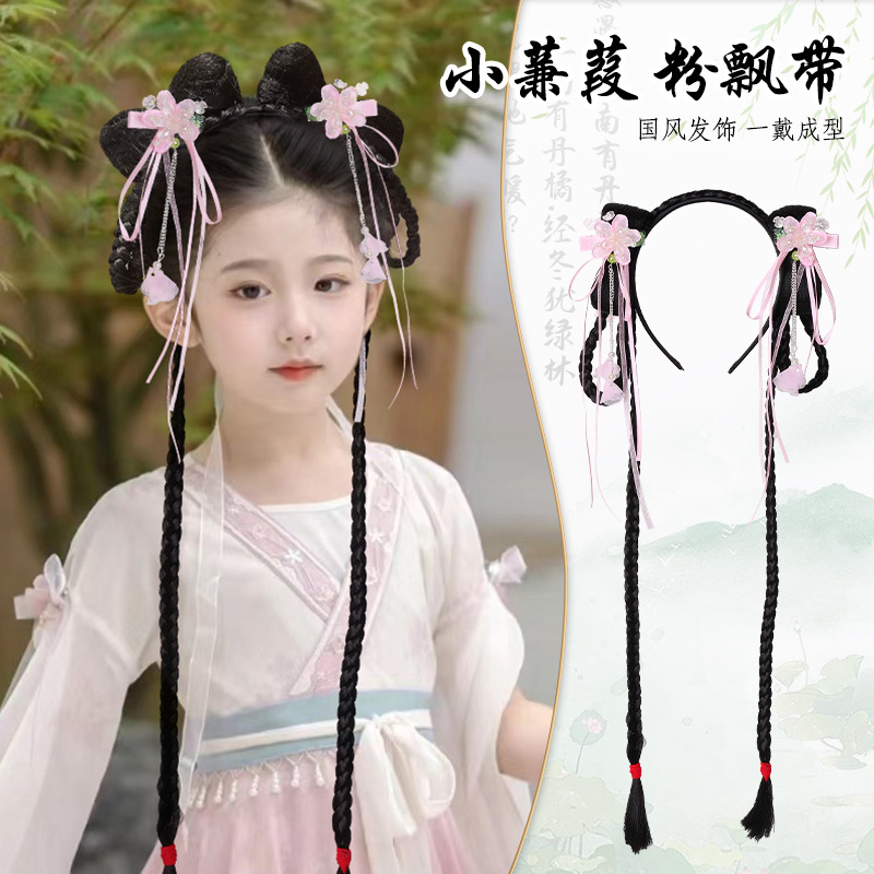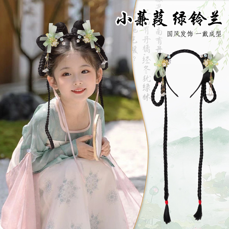 골동품 어린이 한푸 가발 가방 헤어 팩 고대 세트 일체형 헤어 후프 가발 소녀 스타일 헤어 액세서리 헤어 Bun 헤드웨어