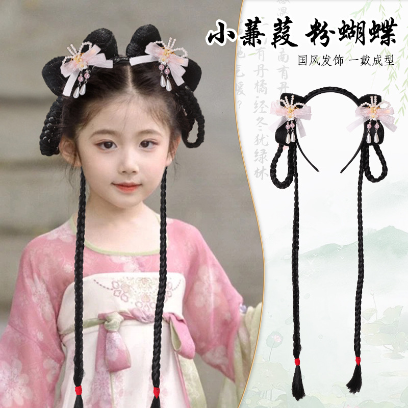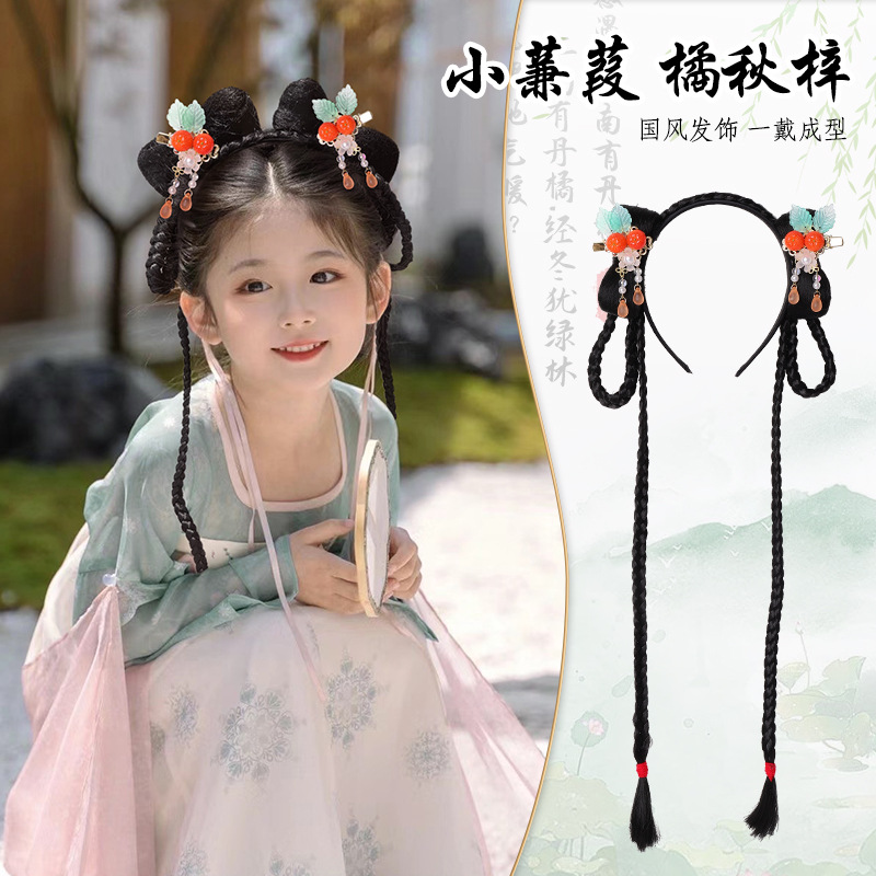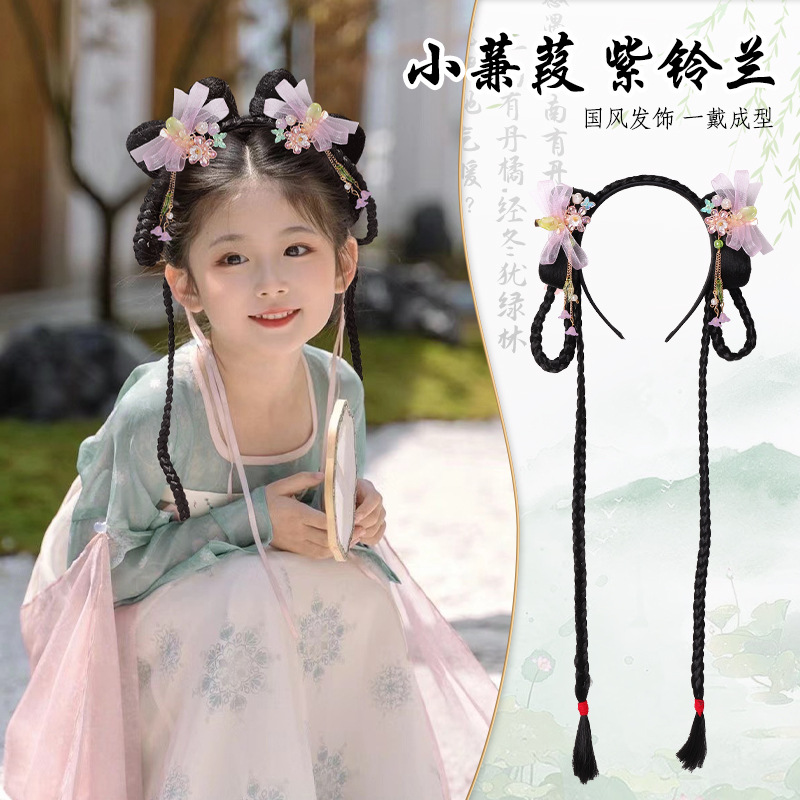 골동품 어린이 한푸 가발 가방 헤어 팩 고대 세트 일체형 헤어 후프 가발 소녀 스타일 헤어 액세서리 헤어 Bun 헤드웨어스토어 가기