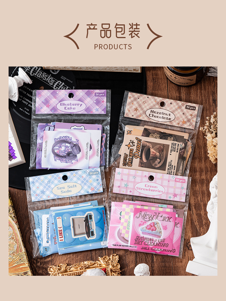 미국 레트로 스티커 팩 DIY 손 계정 장식 스티커 케이크 식품 높은 색상 가치 창조적 인 Ins 스타일 손 계정 스티커스토어 가기