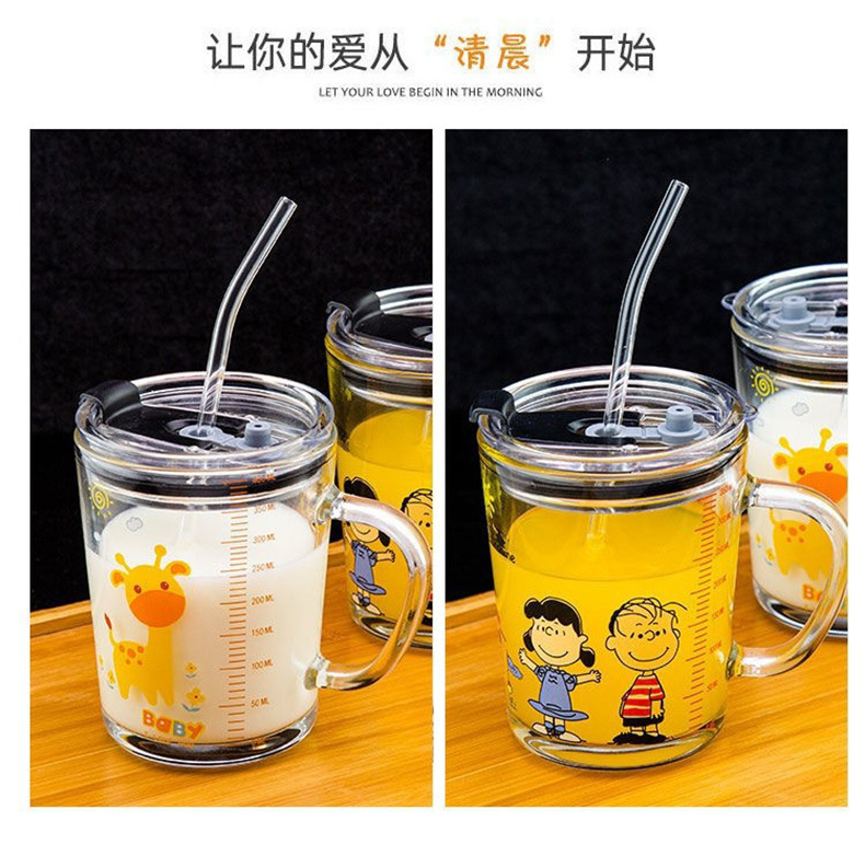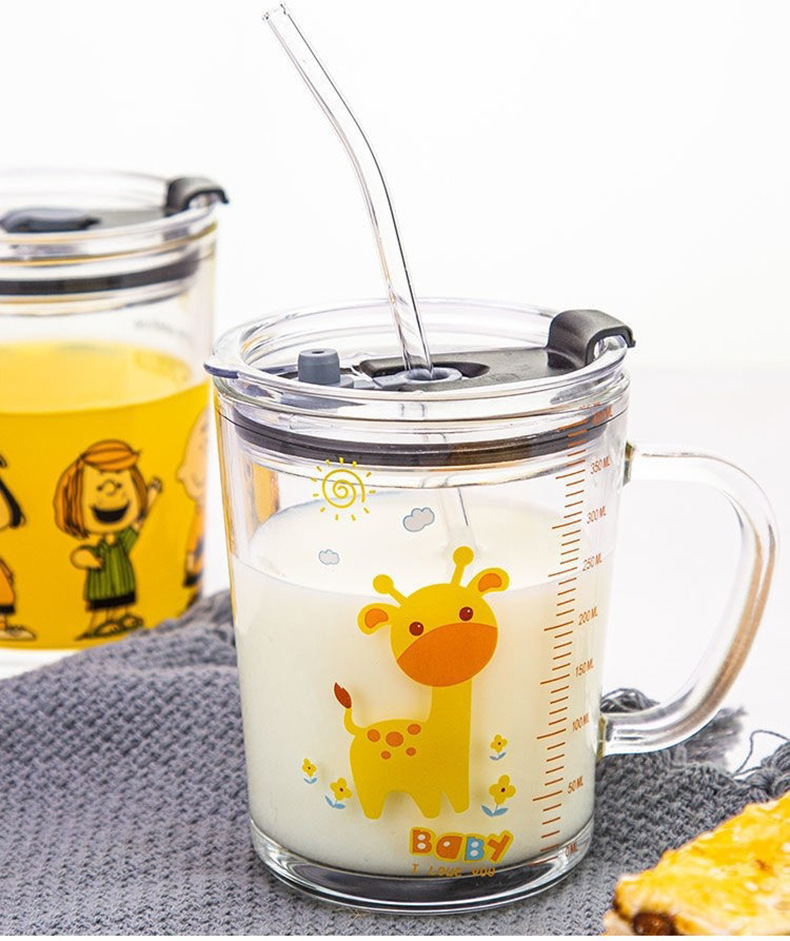실리콘 밀짚 컵 주스 음료 우유 분말 만화 뚜껑이있는 간단한 범용 어린이 우유 컵스토어 가기