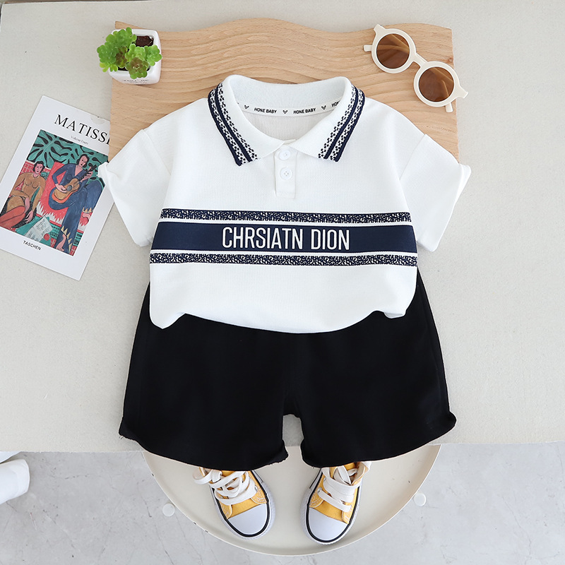 남자들의 여름 반팔 세트 2024 새로운 서양식 아기 옷 잘 생긴 어린이 여름 폴로 셔츠 투피스 세트