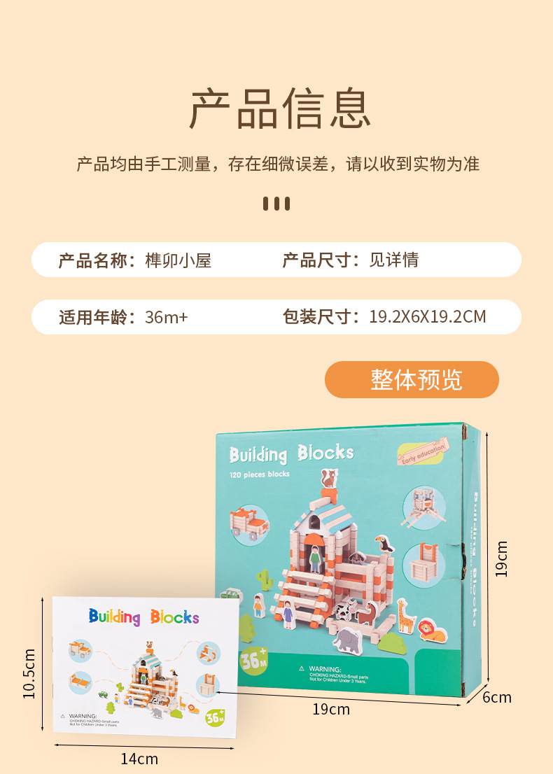 Luban Mortise 및 Tenon 공동 구조 어린이 조기 교육 건물 블록 캐빈 창조적 인 공간 건설 조립 된 실습 목재 장난감스토어 가기