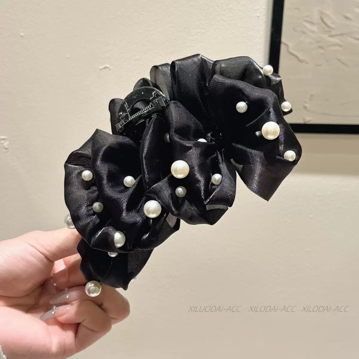 새로운 스타일 성숙한 여성 우아한 깃털 클립 수제 조각 꽃 빛 럭셔리 헤어 디스플레이 블랙 하이 엔드 대형 헤어 액세서리 헤어핀