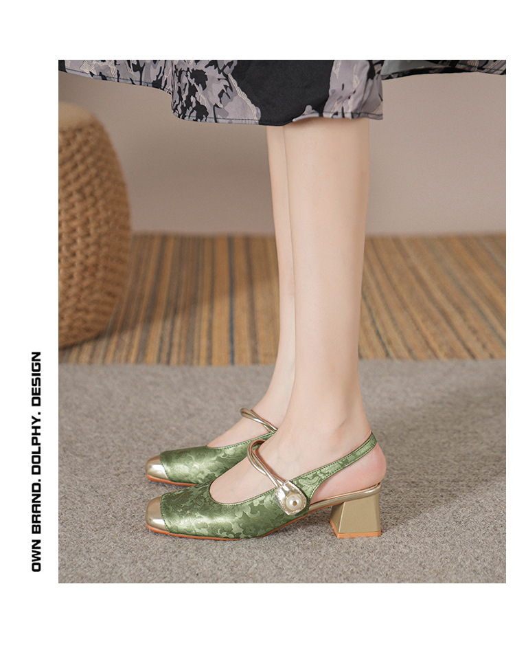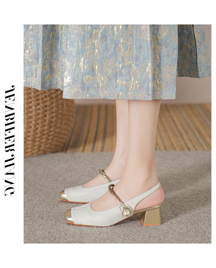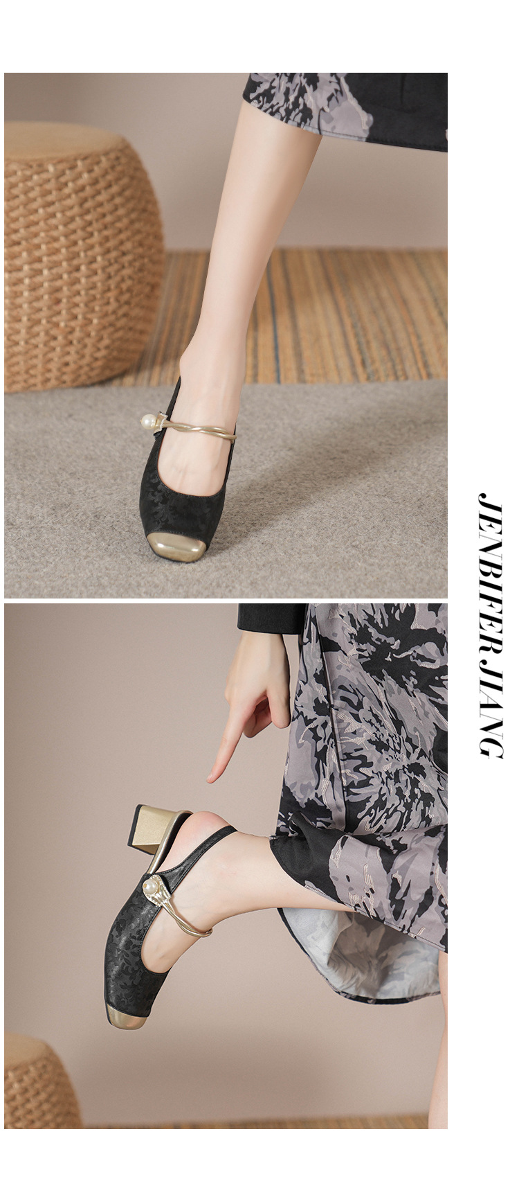 얕은 입 신발 여성의 봄과 여름 2023 새로운 레트로 버클 로우 힐 예술 광장 발가락 부드러운 가죽 메리 제인 신발스토어 가기
