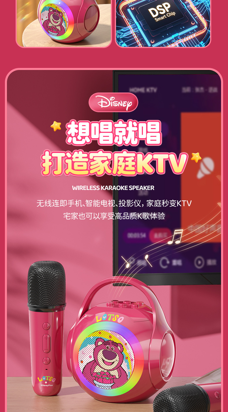 디즈니 블루투스 마이크 마이크 오디오 노래방 야외 가족 휴대용 ktv 어린이 선물 휴대용스토어 가기
