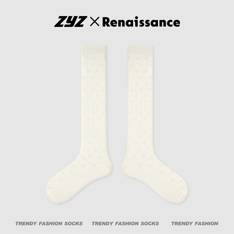 르네상스 오리지널 여성용 양말 봄과 여름 세로 줄무늬 여아 양말 통기성 퓨어 화이트 빗 면화 송아지 양말