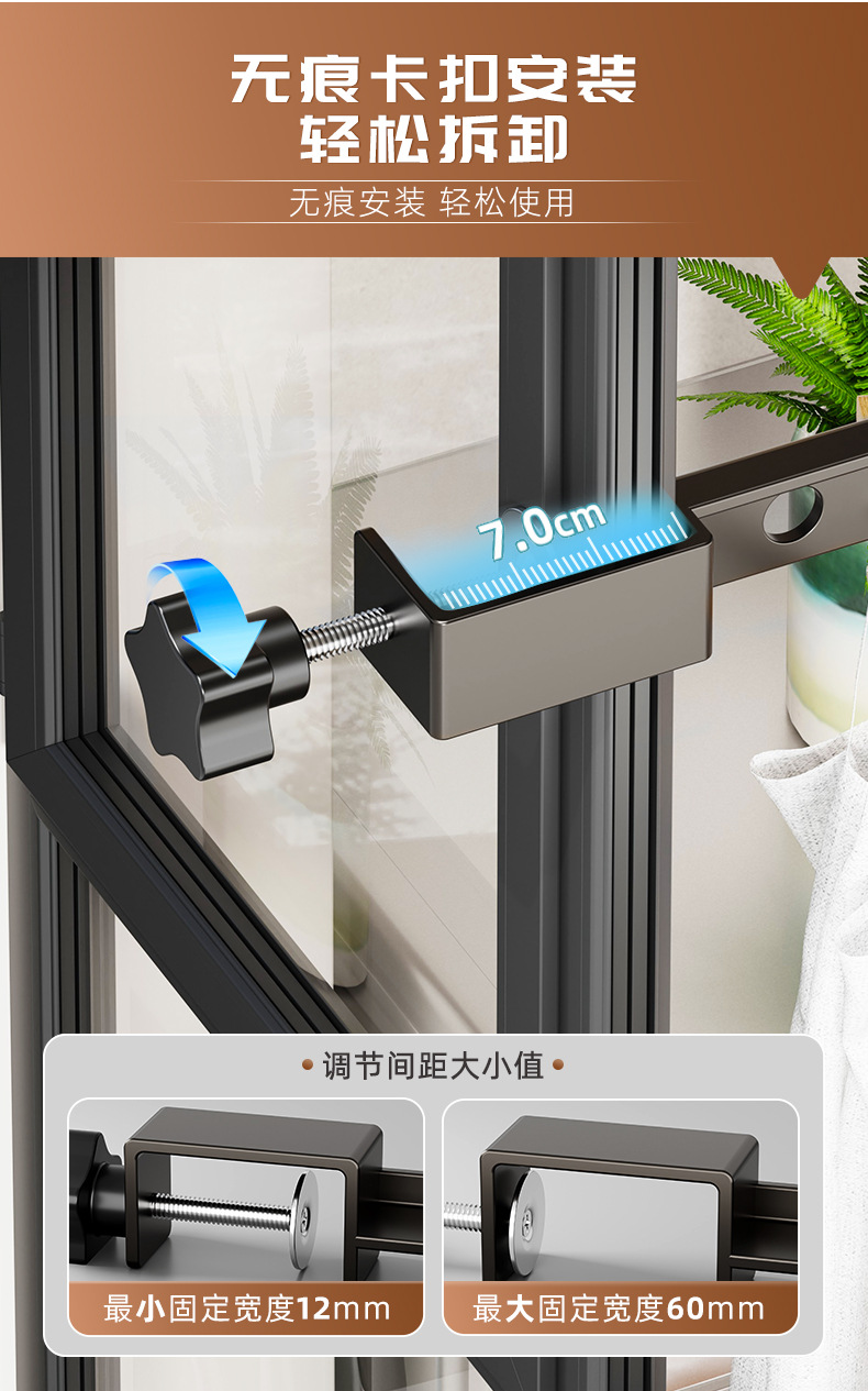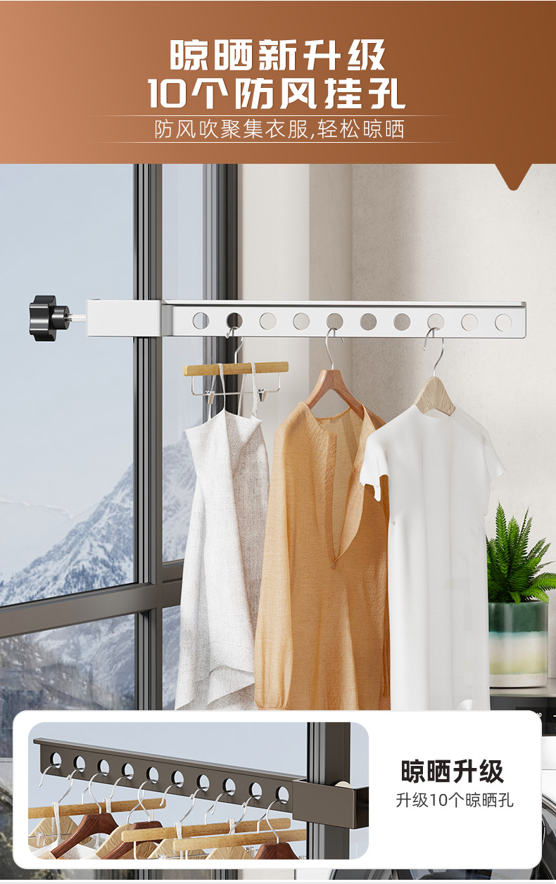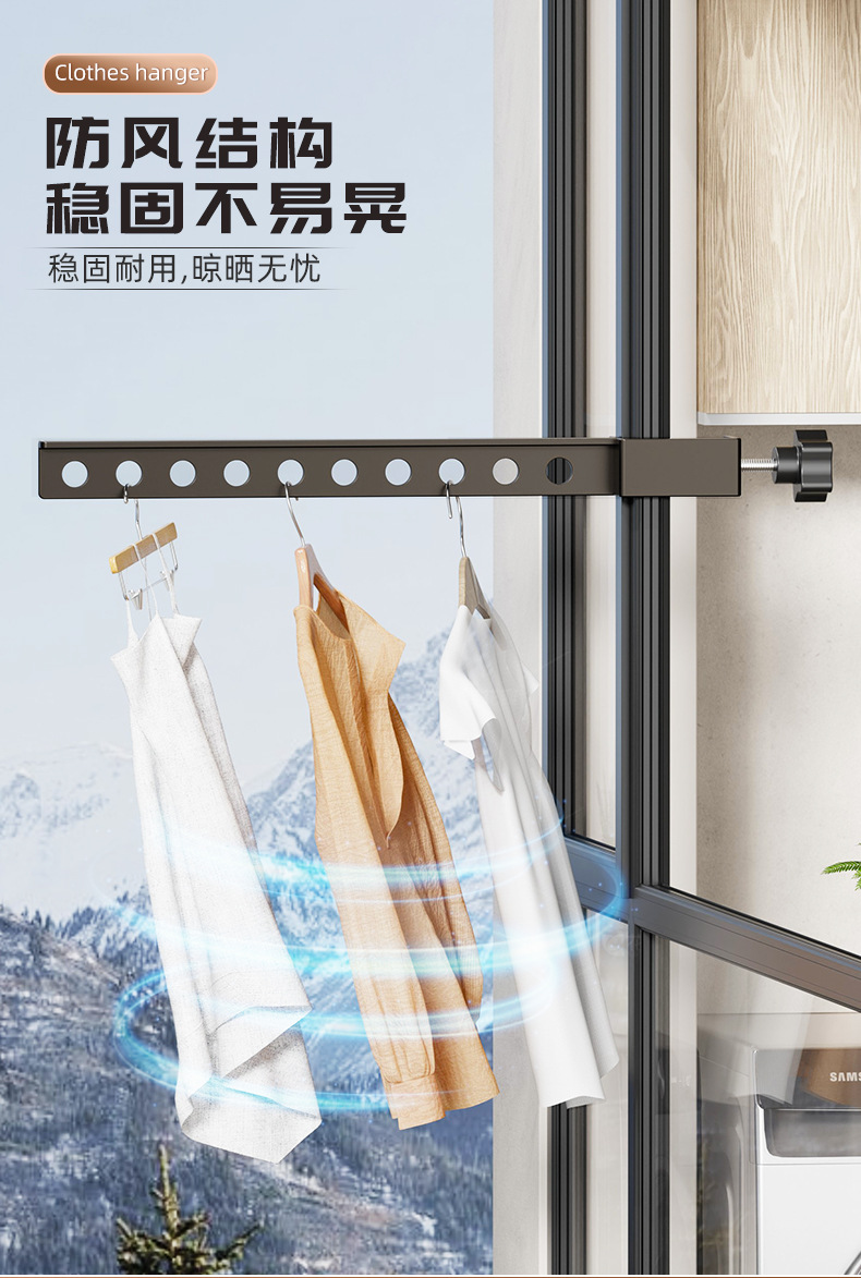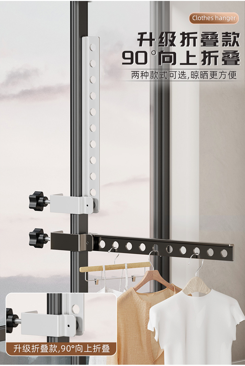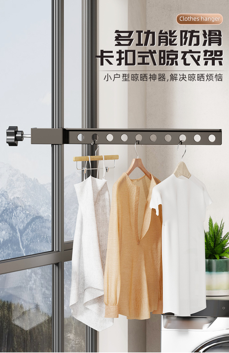 다기능 창문 빨래 건조대, 스냅온식 소형 창틀 의류 건조대, 창틀 미끄럼 방지 고정식 빨래 건조대