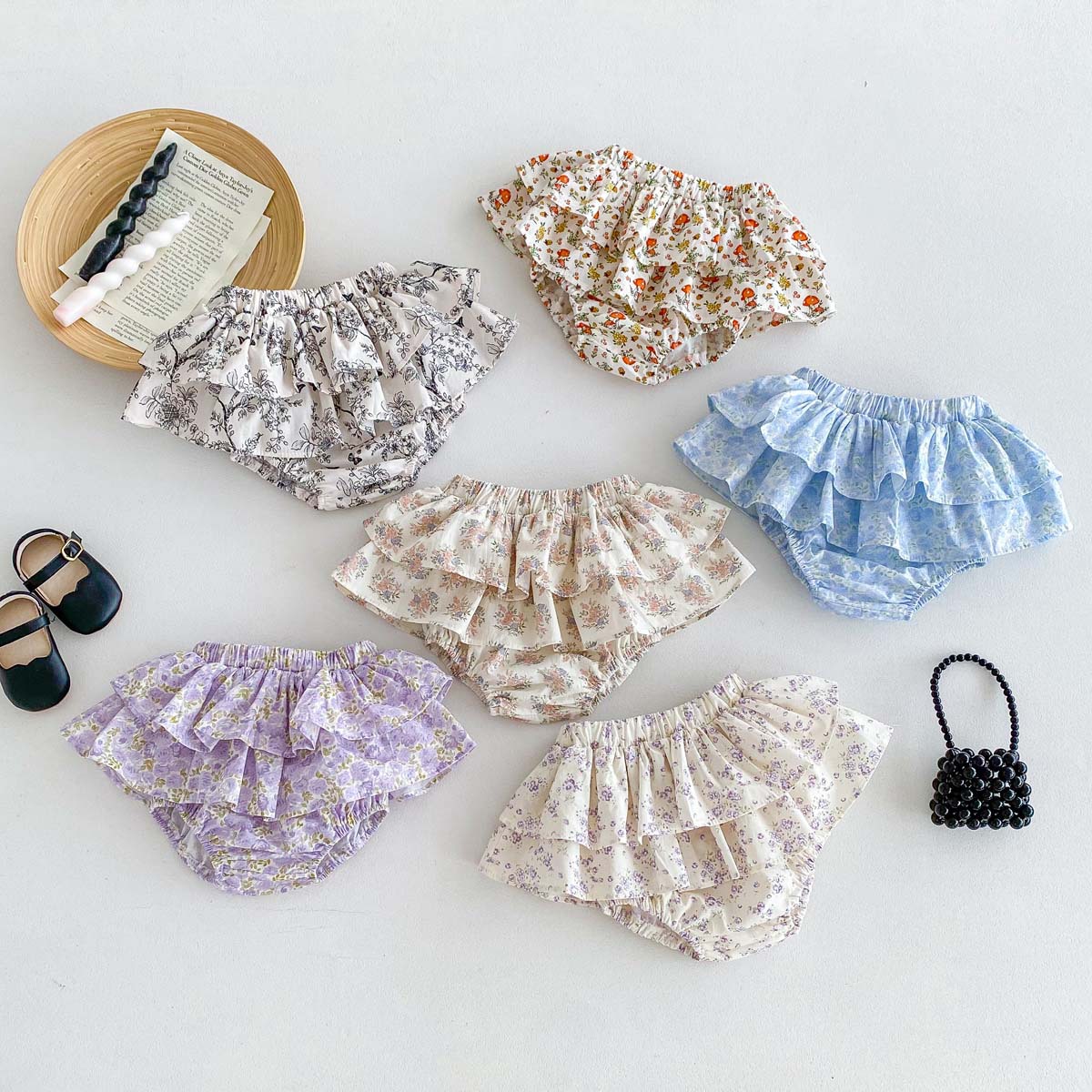 Ins 여름 유아 꽃 반바지 소녀 아기 프릴 케이크 스커트 바지 달콤한 다목적 가방 엉덩이 바지 유행