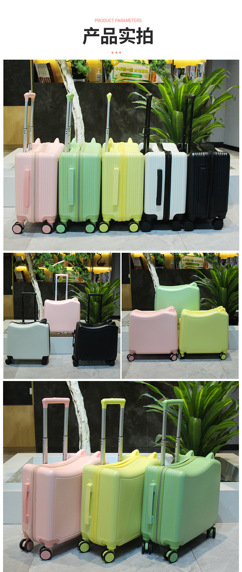고양이 귀 마카롱 컬러 승마 어린이 트롤리 케이스 새로운 유니버설 휠 조합 잠금 어린이 수하물