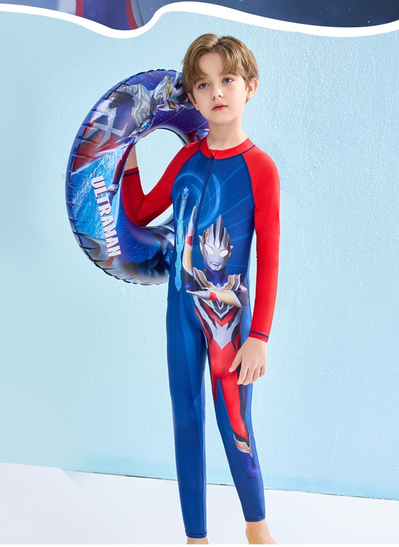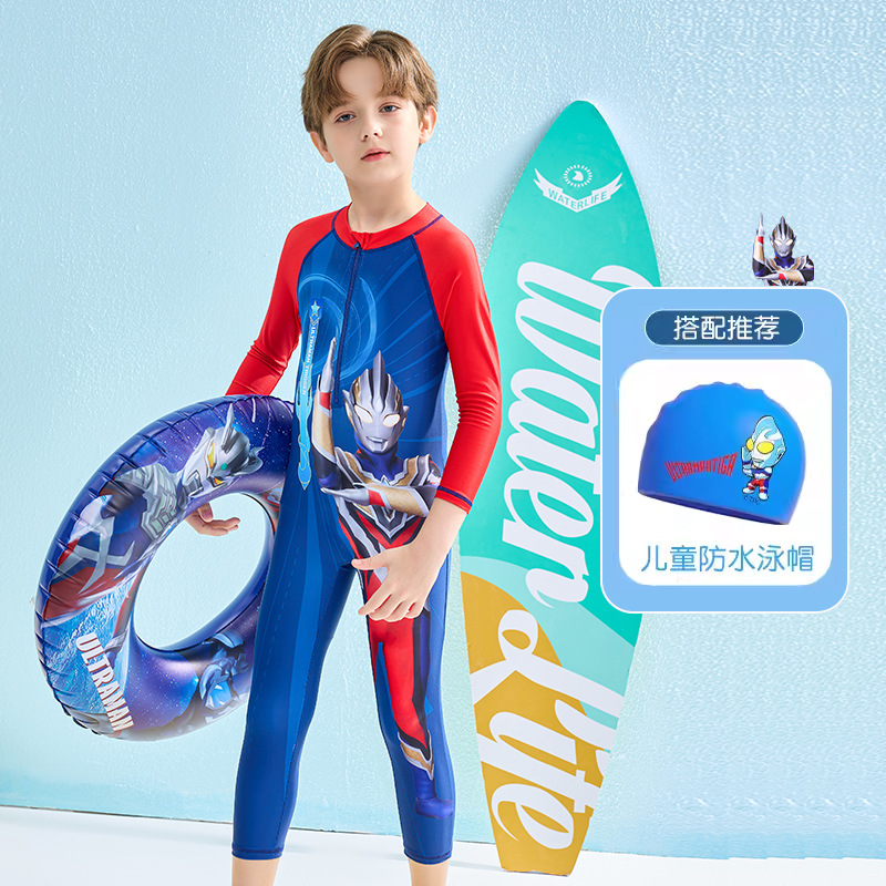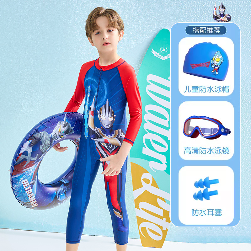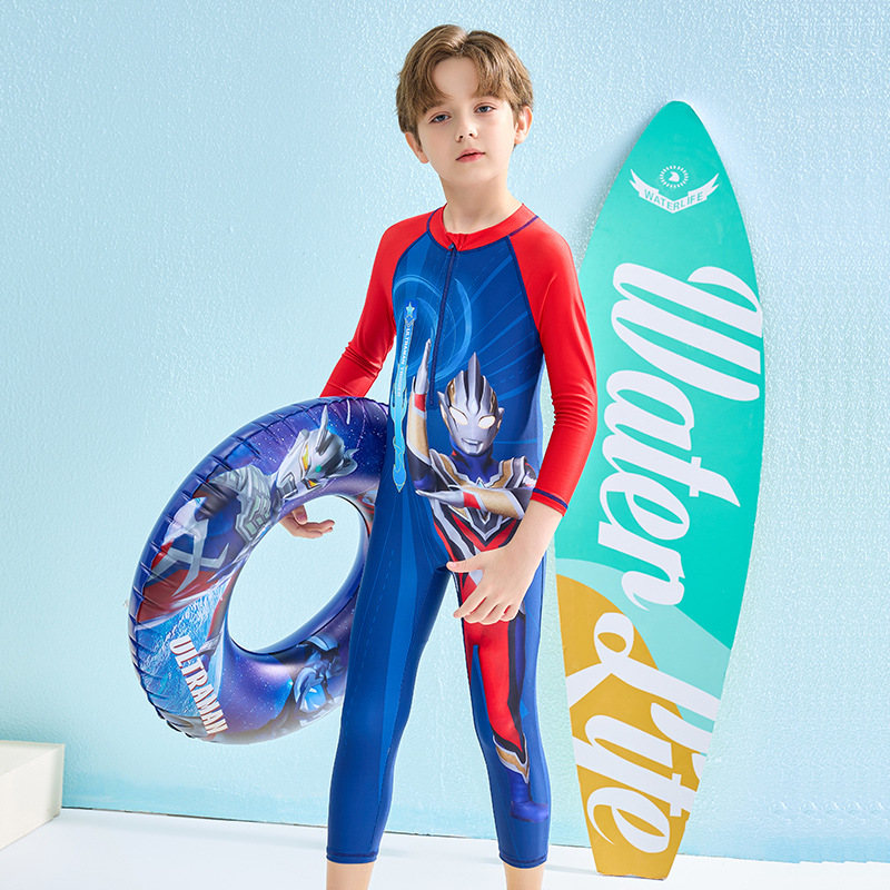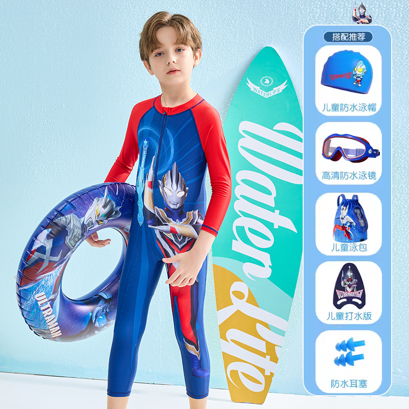 어린이 수영복 소년 2024 여름 새로운 알트만 긴 소매 바지 큰 아이들을위한 원피스 수영복 수영 세트스토어 가기