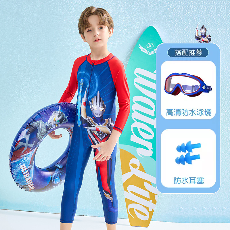 어린이 수영복 소년 2024 여름 새로운 알트만 긴 소매 바지 큰 아이들을위한 원피스 수영복 수영 세트