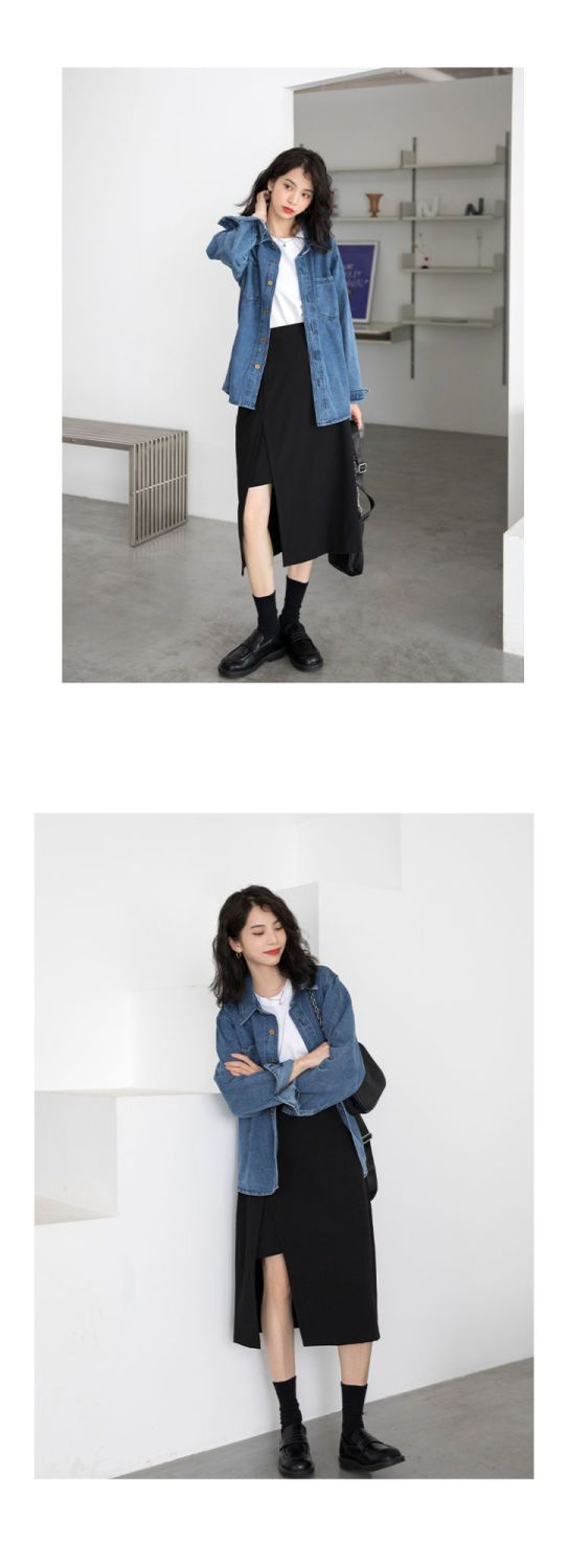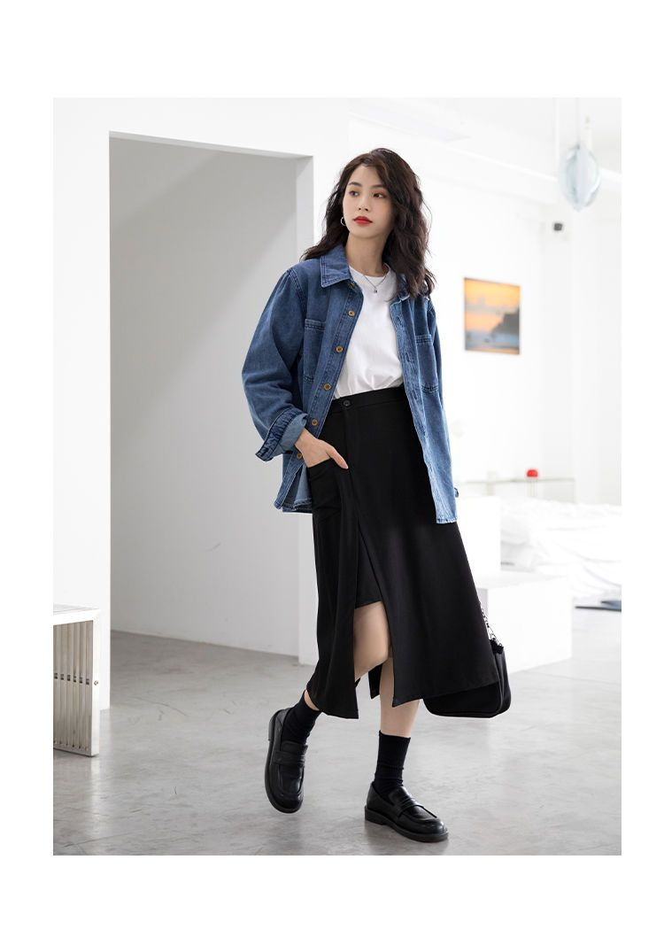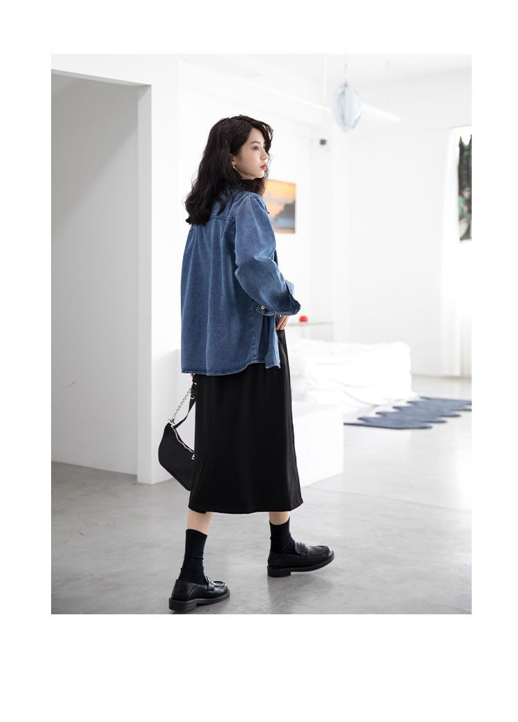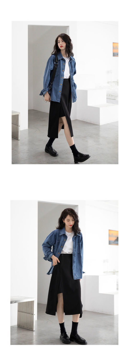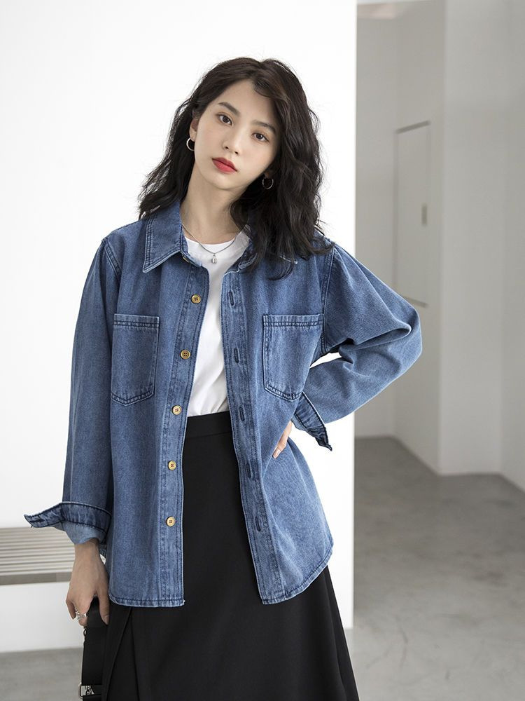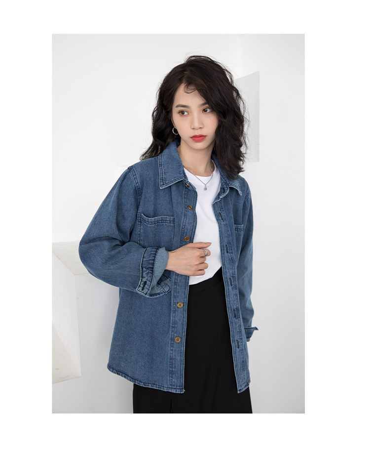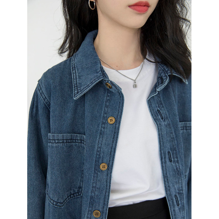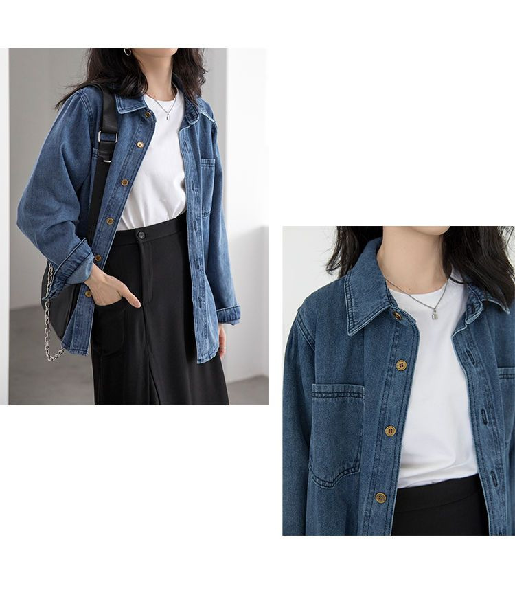 봄과 가을 데님 코트 여성용 데님 재킷 데님 긴 소매 데님 탑 데님 캐주얼 올 매치 재킷스토어 가기