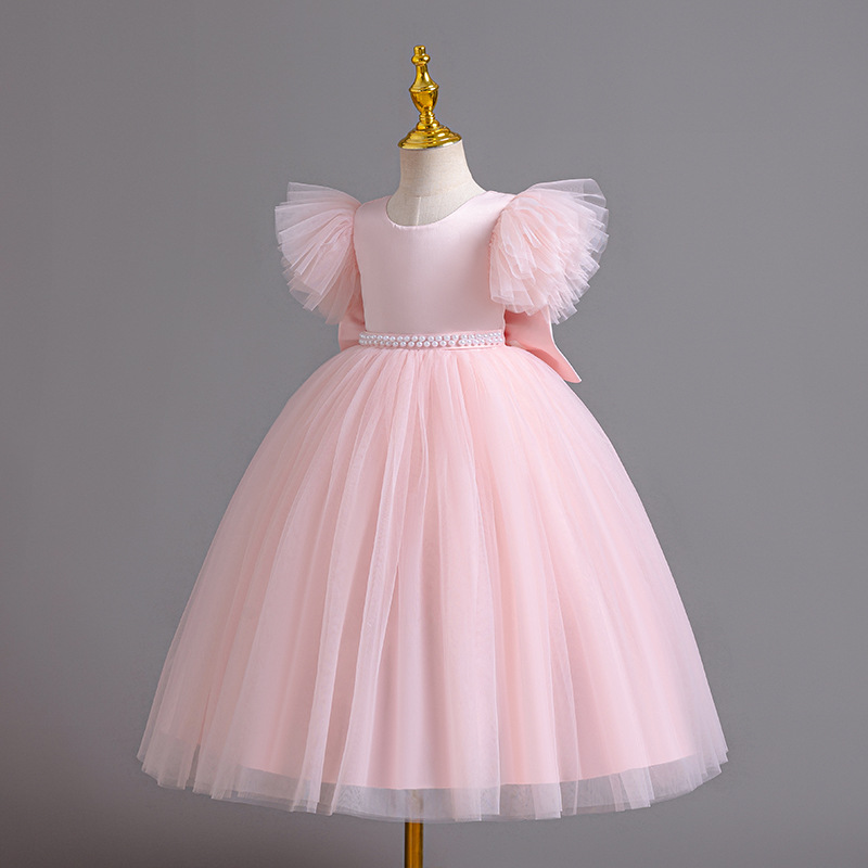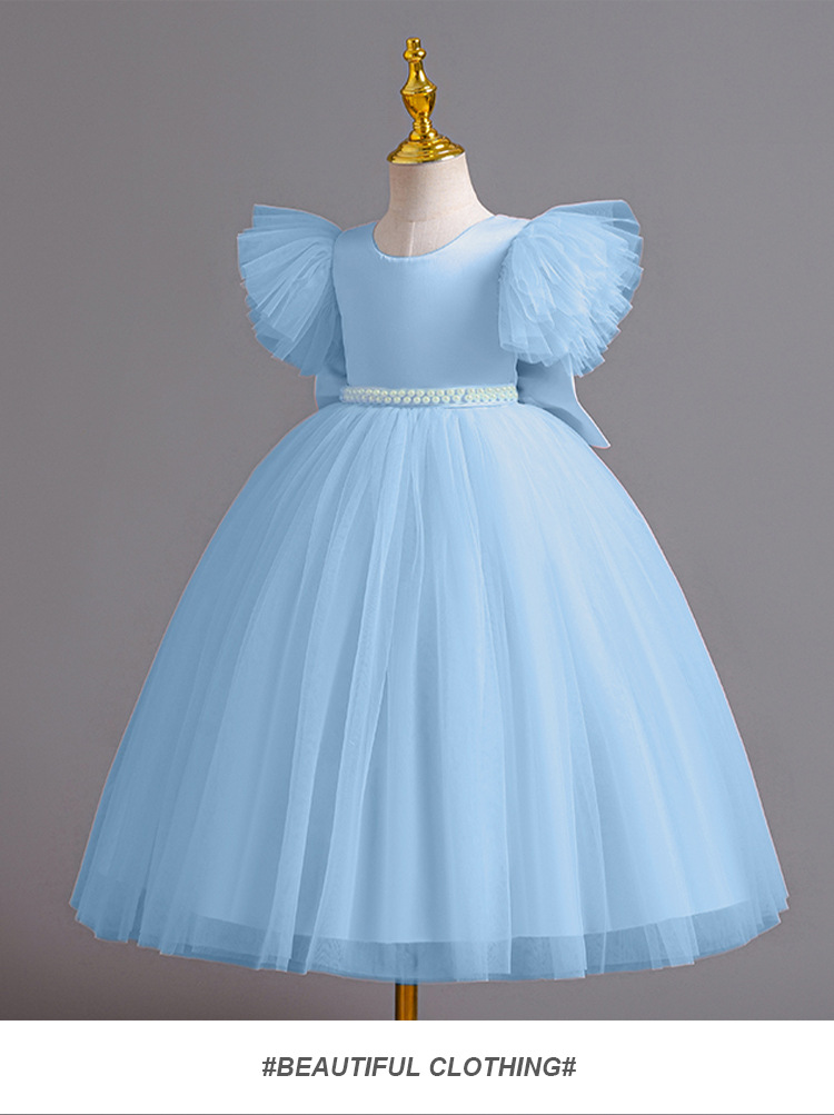 소녀 플라잉 슬리브 백리스 작업 공주 원피스 메쉬 얽히고 설킨 원피스 생일 꽃 소녀 호스트 원피스 공연 원피스스토어 가기