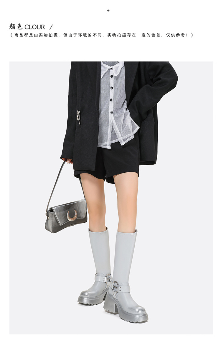 웨스턴 데님 라이더 부츠 여름 2024 새로운 슈퍼 하이힐 실버 부츠 두꺼운 하단 레트로 오토바이 부츠 여성용 부츠스토어 가기